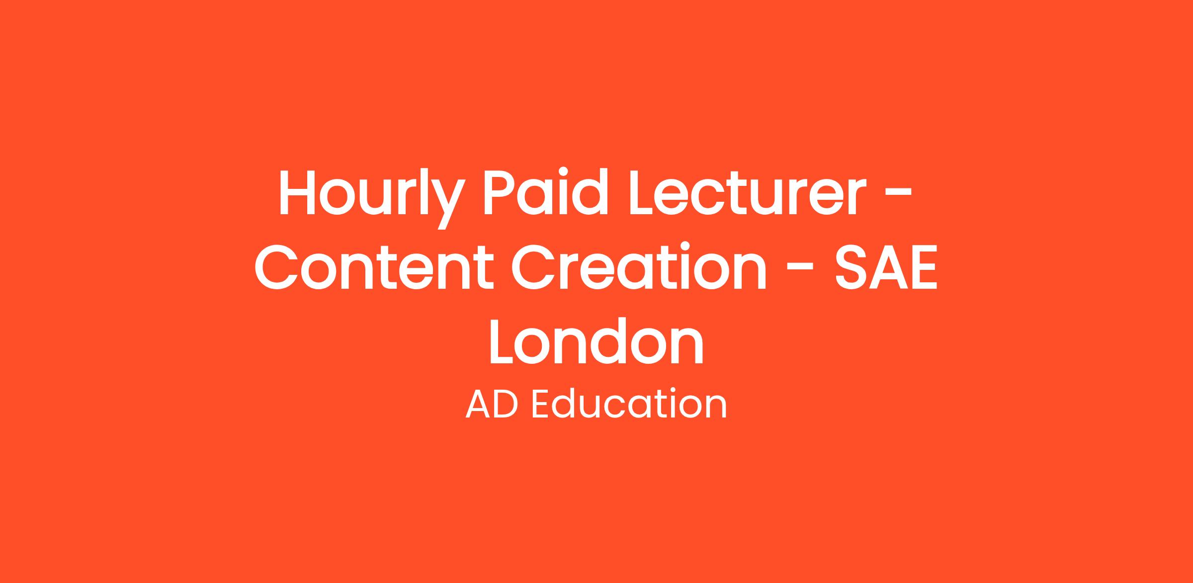 We are looking for knowledgeable and engaging educators to teach on our Content Creation degree modules in SAE Higher Education programmes under the guidance of the Academic and Programme Managers. The ability to deliver across a number of modules at all levels is desirable.