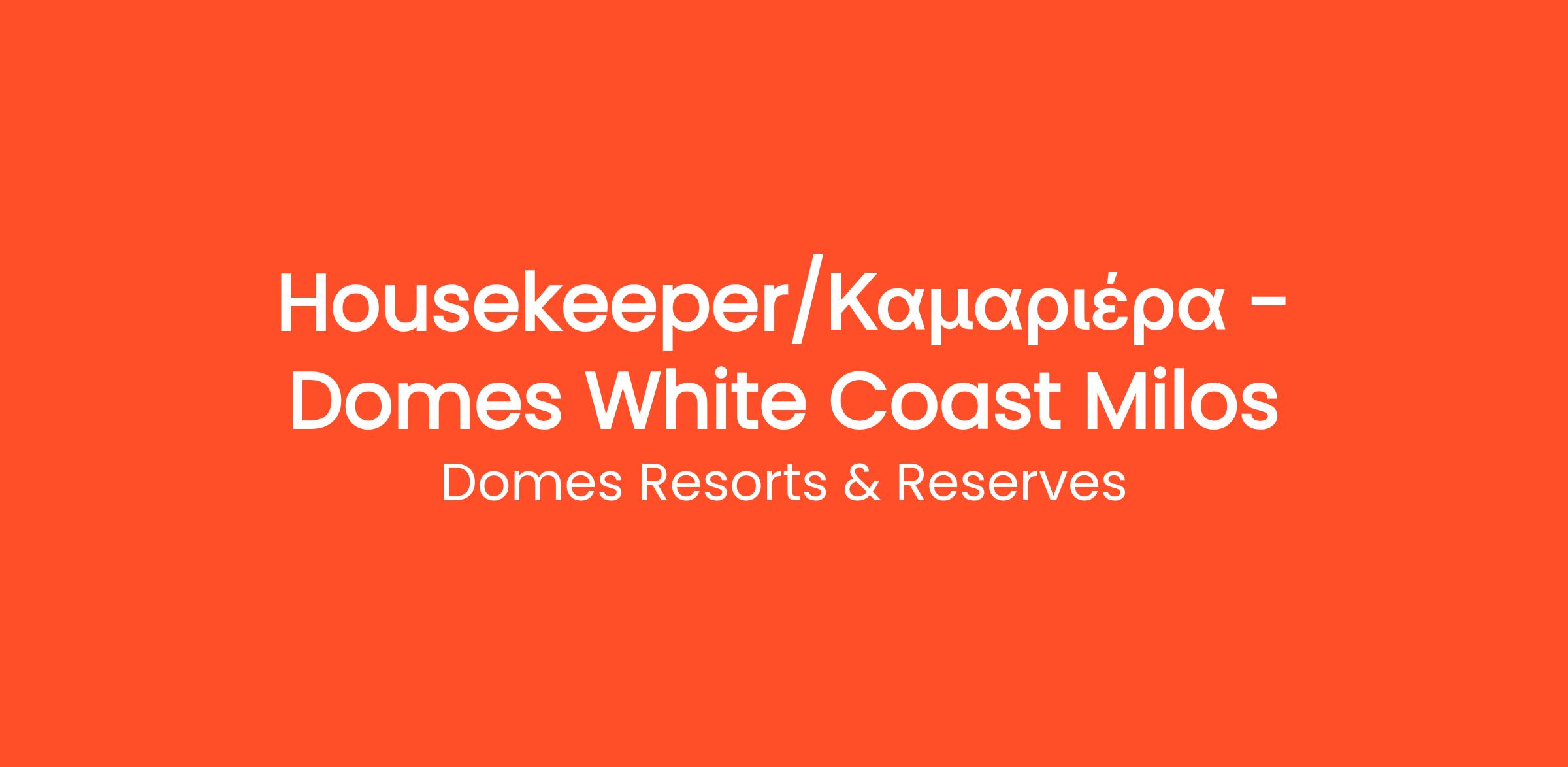 Αυτή την στιγμή προσλαμβάνουμε για το Domes White Coast Milos, μια απόλυτη εμπειρία πολυτελούς 5* resort, που βρίσκεται στην περιοχή Μύτακας της Μήλου.
