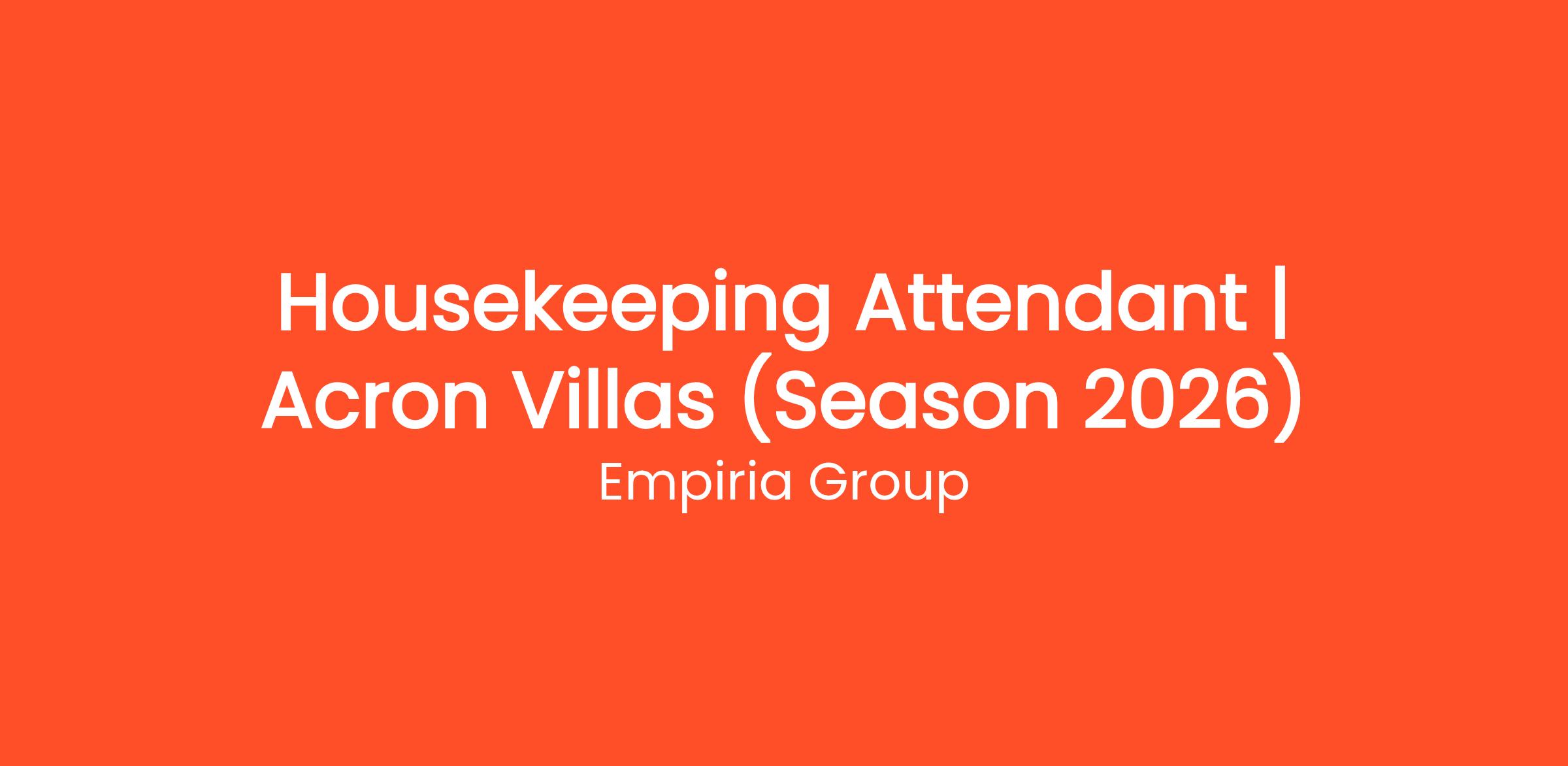 Housekeeping Attendant | Acron Villas (Season 2026)