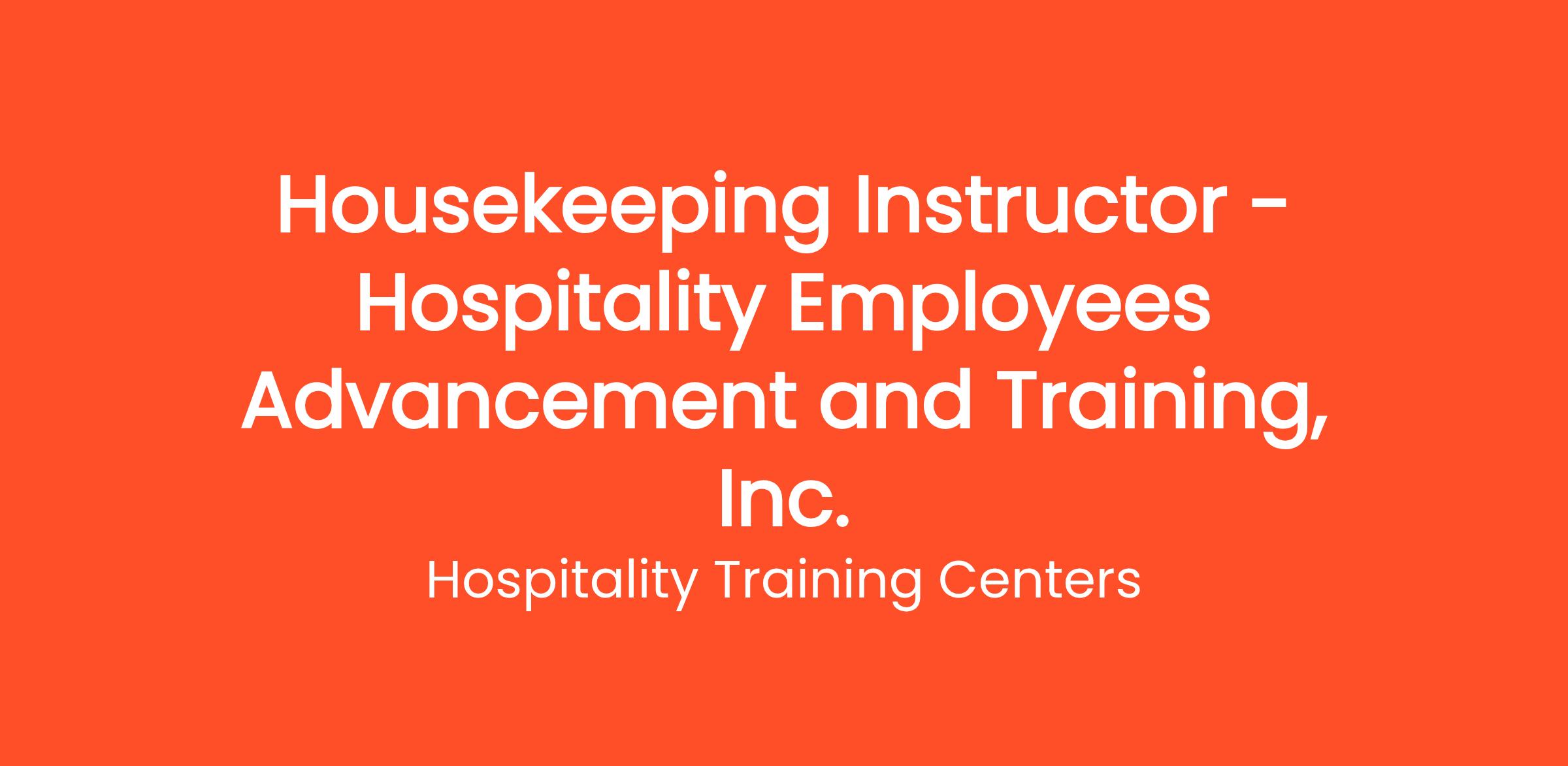 Hospitality Employees and Advancement Training Inc. (HEAT) is seeking an experienced and dedicated Housekeeping Instructor to lead our comprehensive 4-week housekeeping training program. This position is designed to prepare prospective workers for employment in union hospitality environments, with a focus on developing the technical skills, professional standards, and industry knowledge required for successful careers in hotel housekeeping operations.