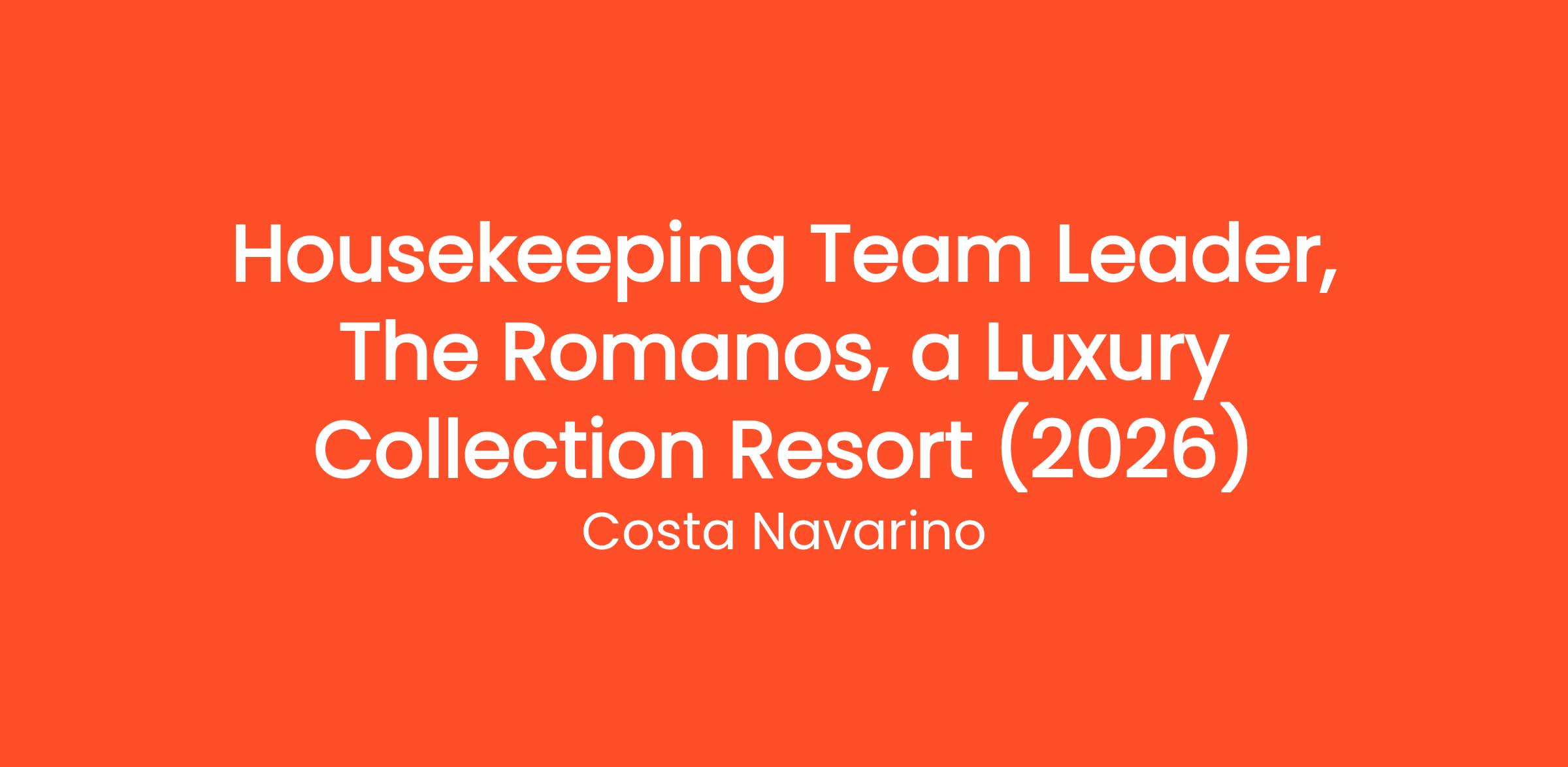 The award-winning The Romanos, a Luxury Collection Resort and The Westin Resort Costa Navarino are seeking for a Housekeeping Team Leader.