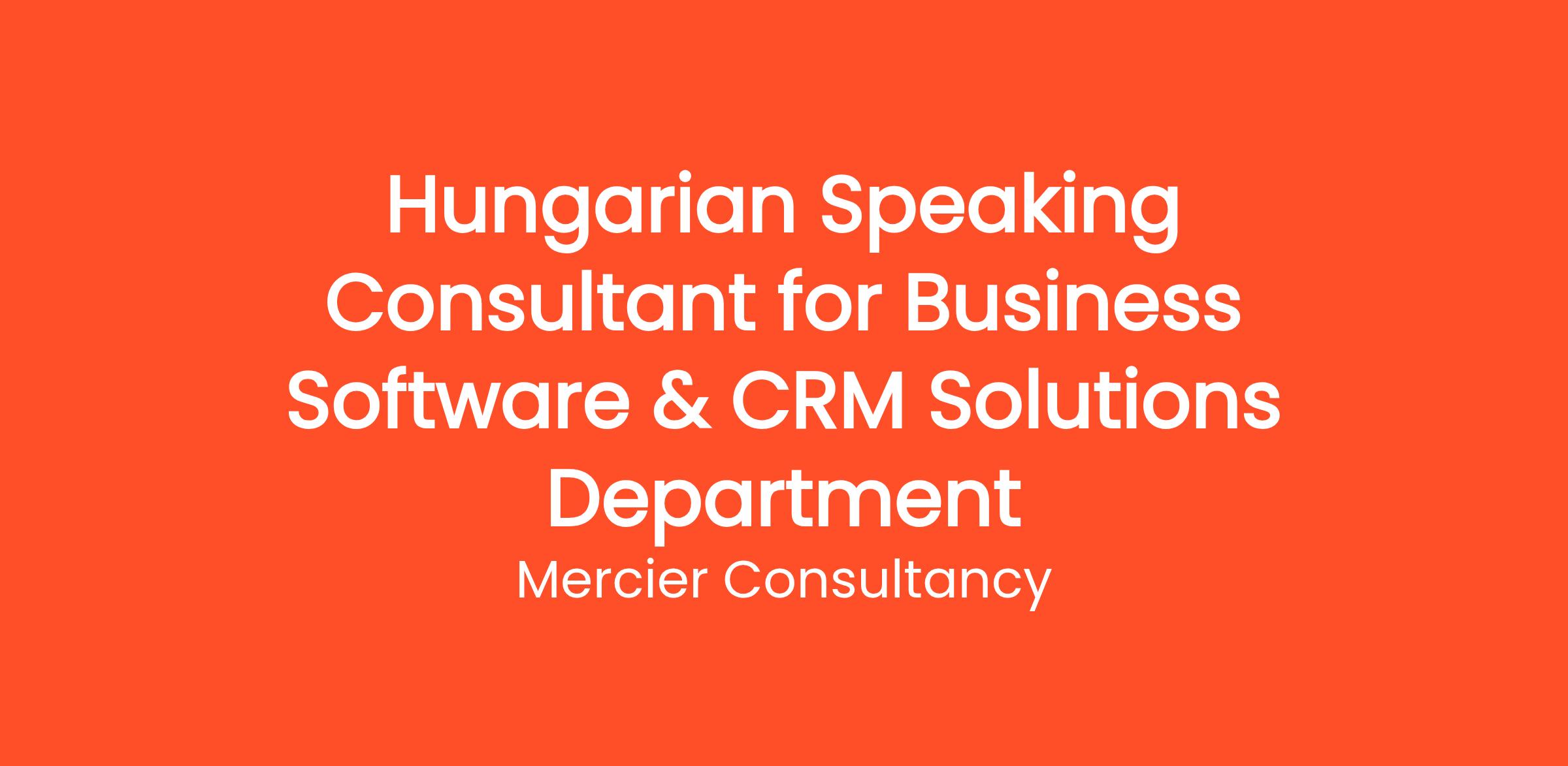Mercier Consultancy is excited to offer a position for a Hungarian Speaking Consultant for our Client's Business Software & CRM Solutions Department. This entry level role is crucial in helping our Hungarian-speaking clients efficiently leverage our business software and CRM solutions to enhance their operational processes and customer engagement strategies.