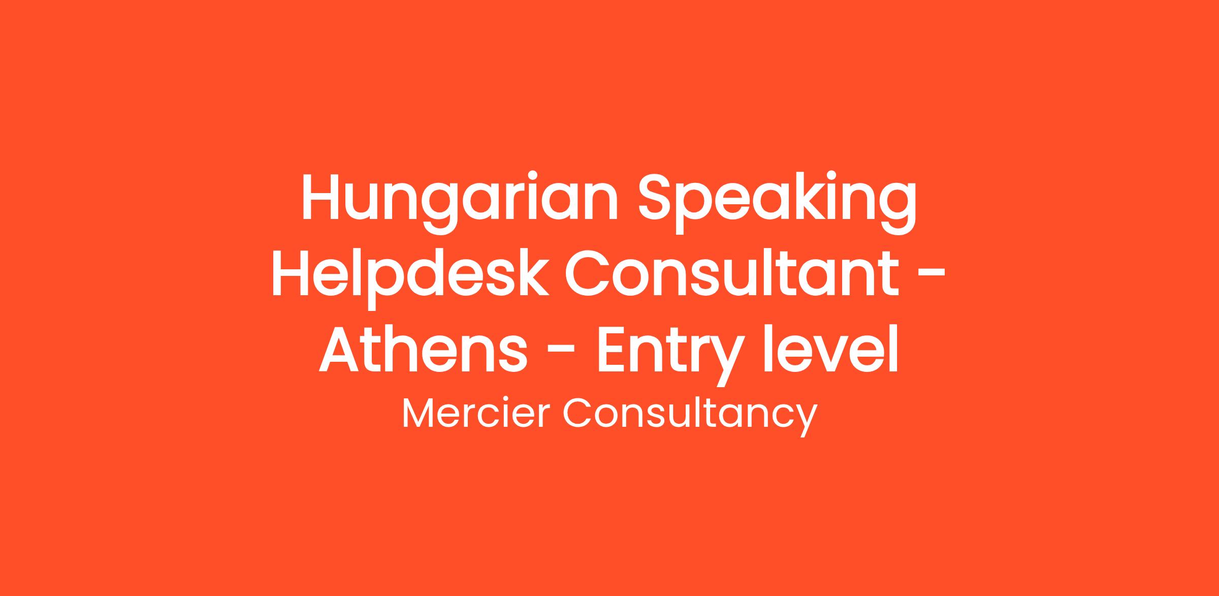 Mercier Consultancy is excited to announce an opening for a Hungarian Speaking Helpdesk Consultant in our Athens office! This entry-level position is perfect for individuals looking to kickstart their careers. As a Helpdesk Consultant, you will provide front-line support to our Hungarian-speaking clients, assisting them with their technical inquiries and ensuring they have a positive experience with our services.