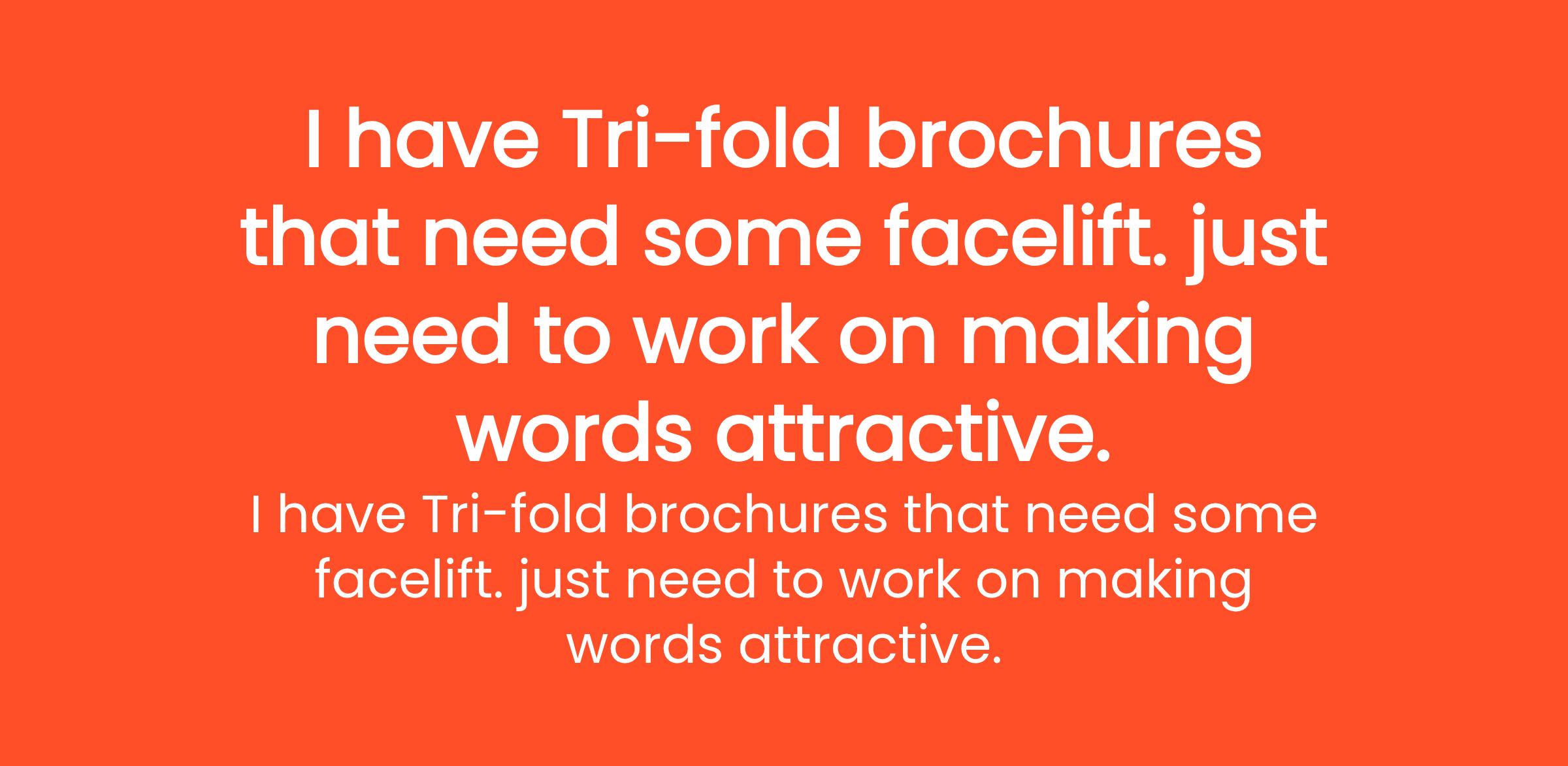 I have Tri-fold brochures that need some facelift. just need to work on making words attractive.