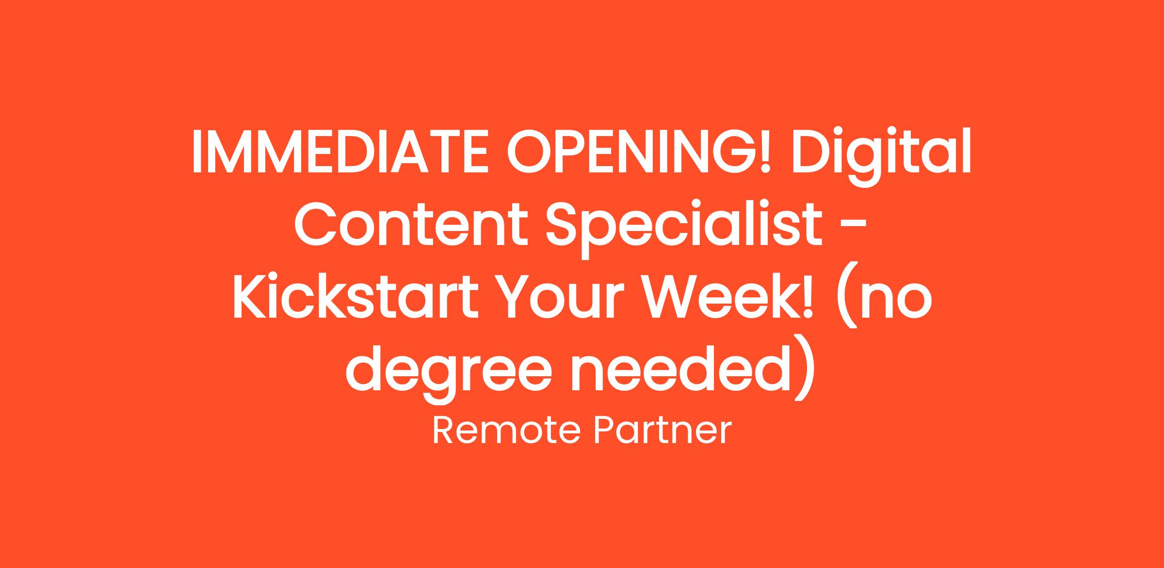 IMMEDIATE OPENING! Digital Content Specialist - Kickstart Your Week! (no degree needed)