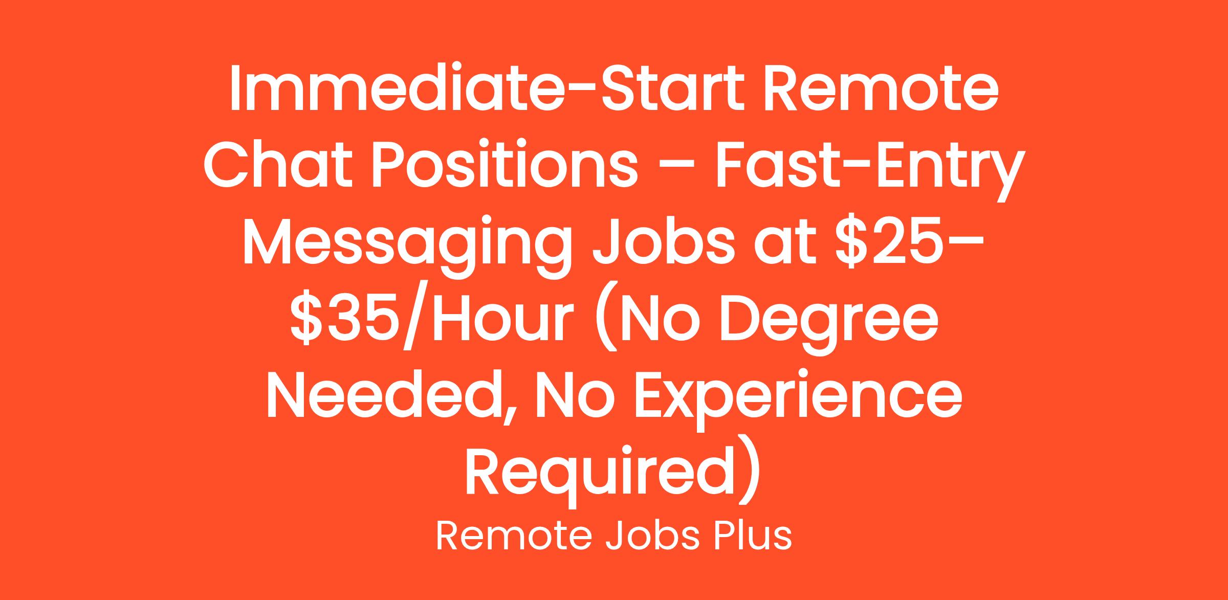 Immediate-Start Remote Chat Positions – Fast-Entry Messaging Jobs at $25–$35/Hour (No Degree Needed, No Experience Required)
