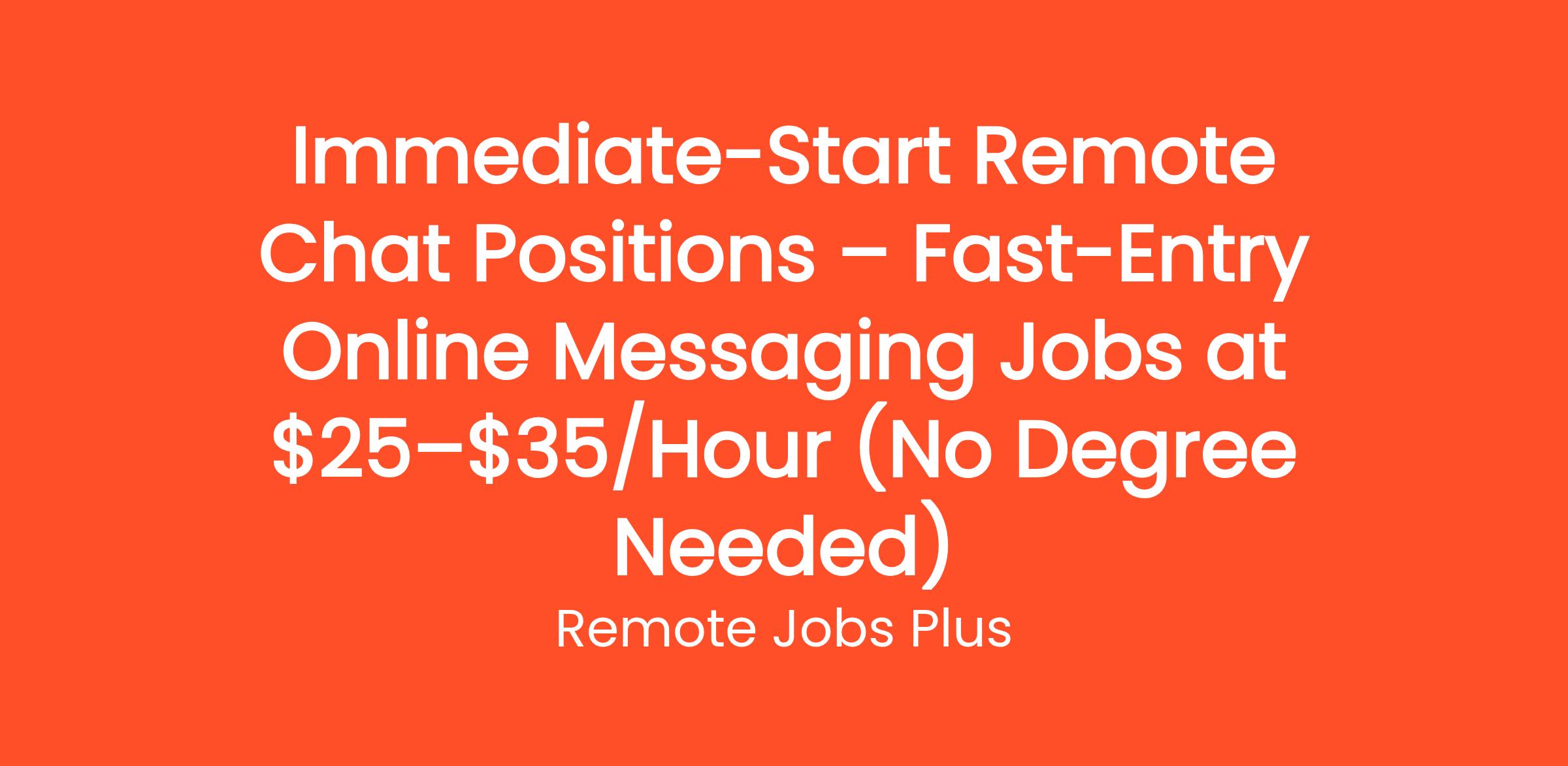 Immediate-Start Remote Chat Positions – Fast-Entry Online Messaging Jobs at $25–$35/Hour (No Degree Needed)