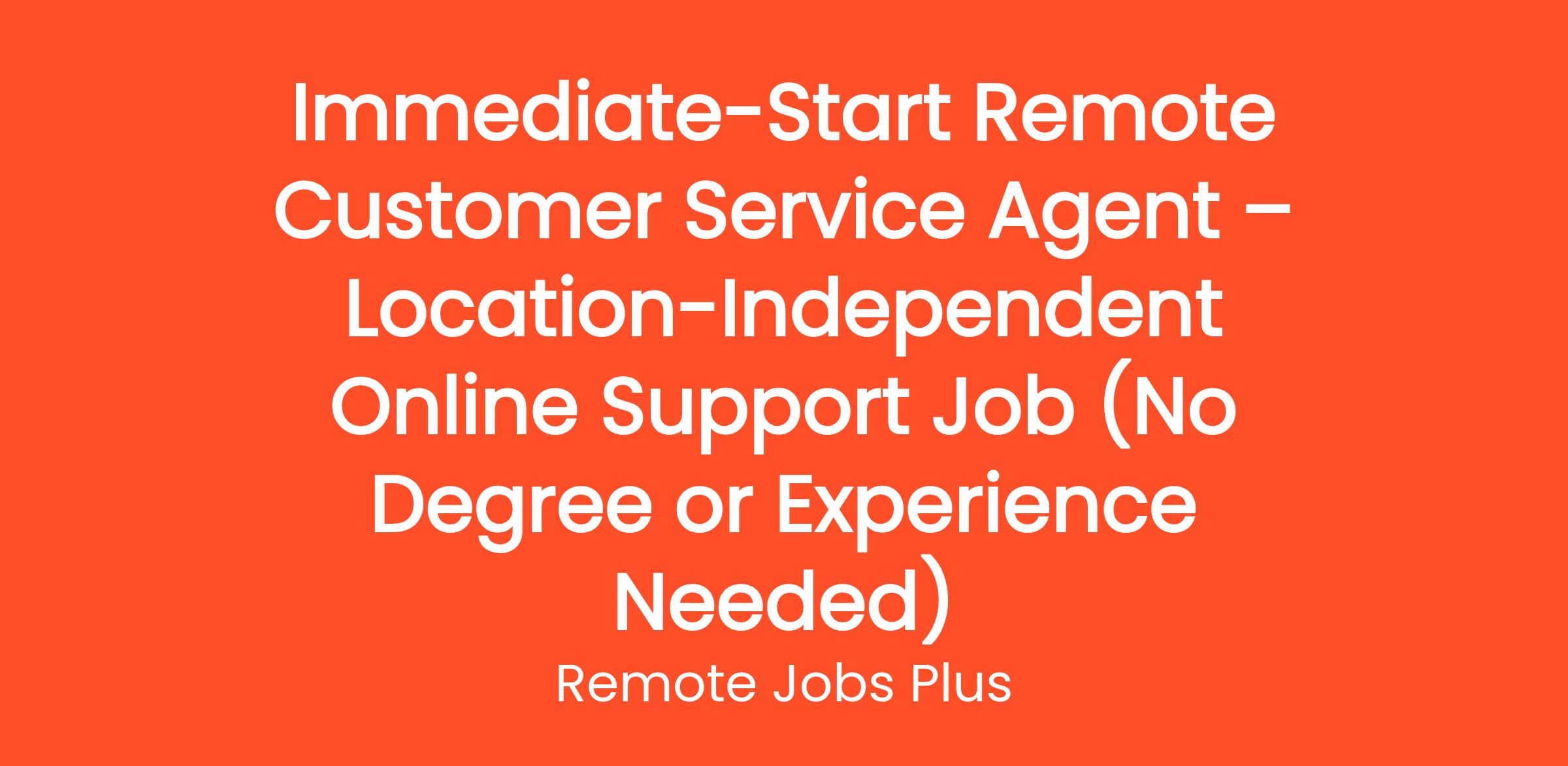 Immediate-Start Remote Customer Service Agent – Location-Independent Online Support Job (No Degree or Experience Needed)