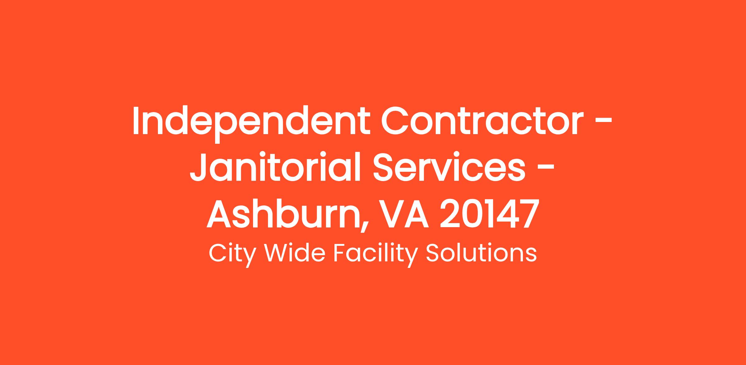 Independent Contractor - Janitorial Services -Ashburn, VA 20147