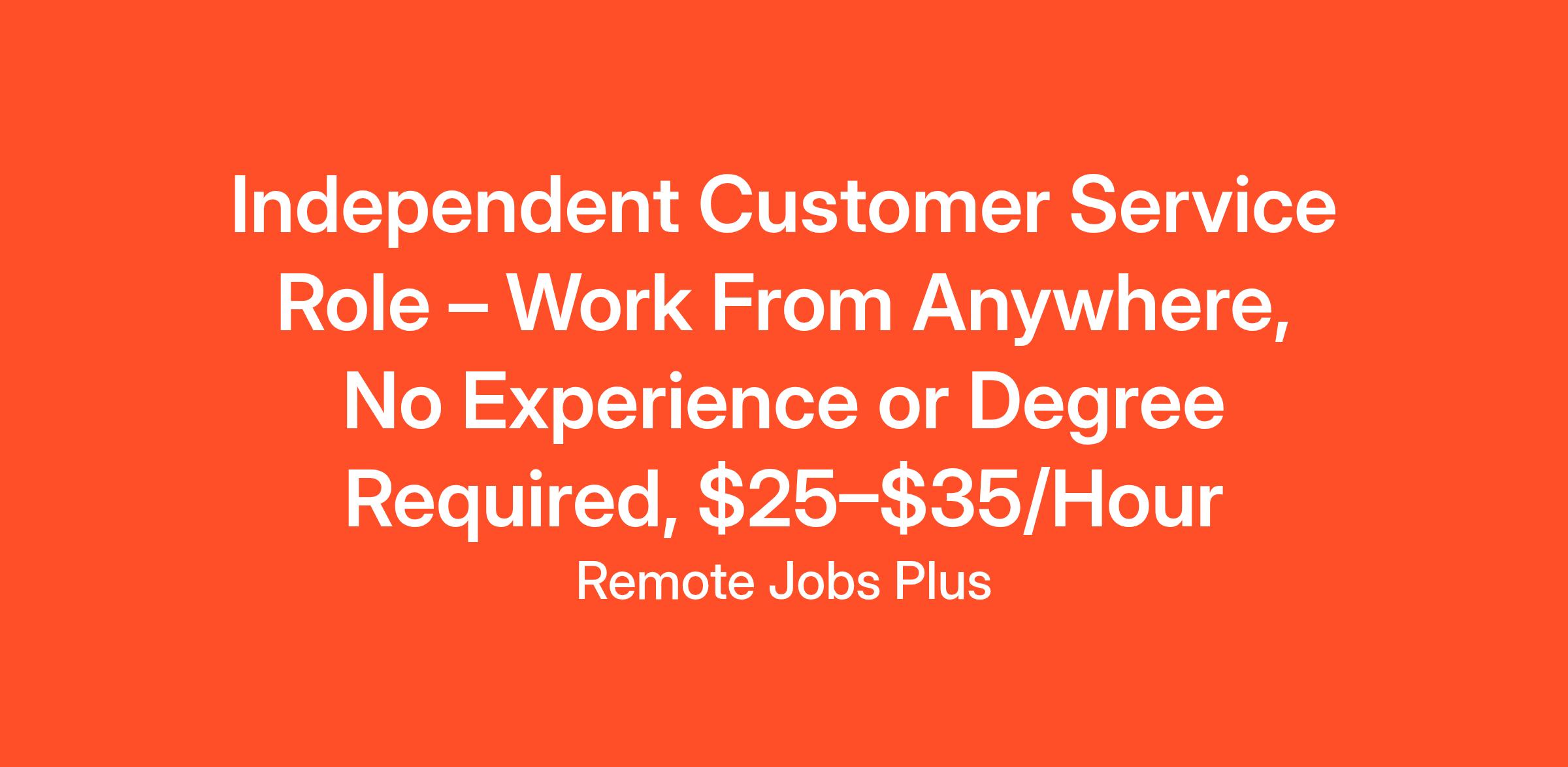 Independent Customer Service Role – Work From Anywhere, No Experience or Degree Required, $25–$35/Hour