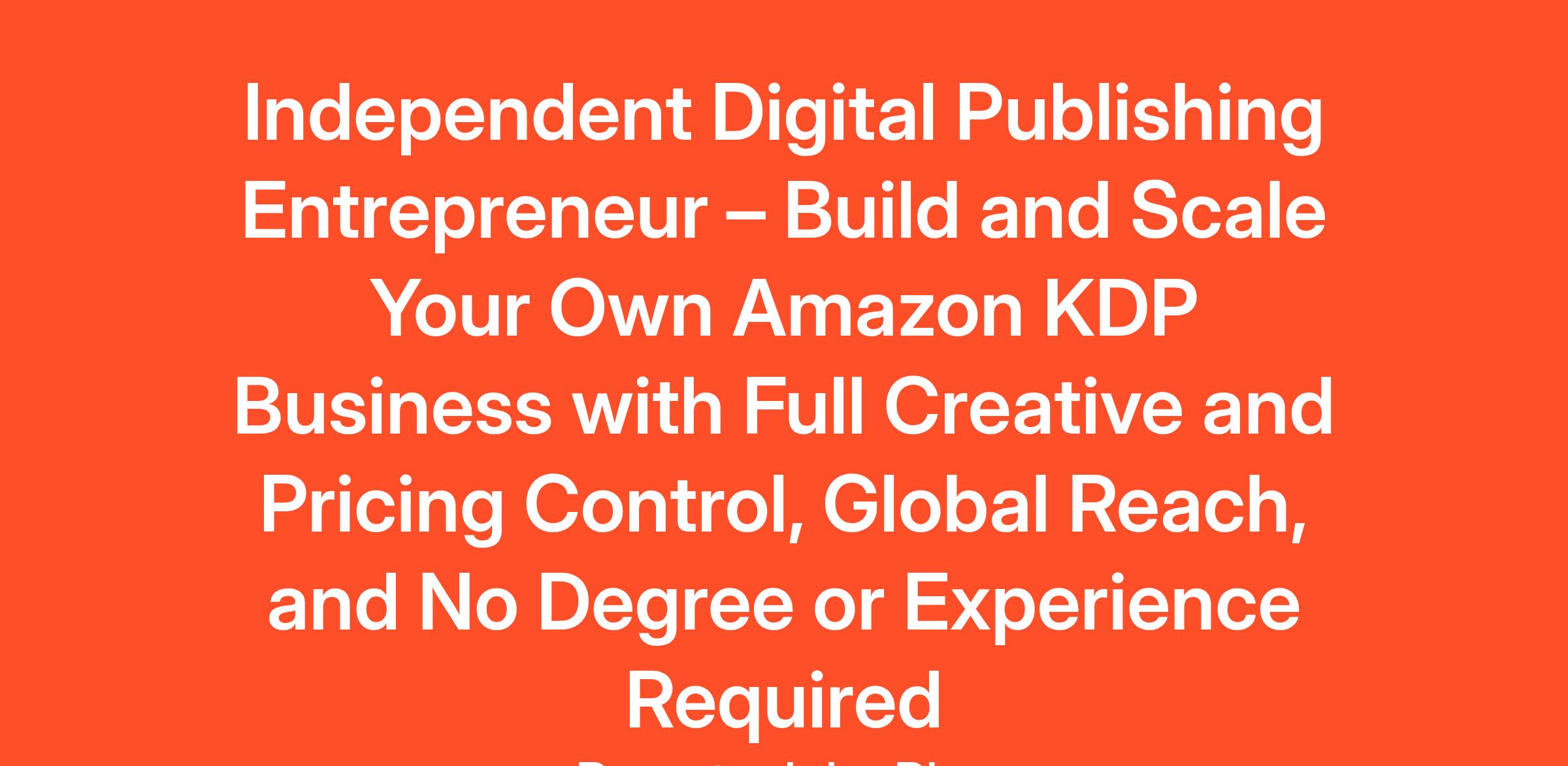 Opportunity OverviewImagine building an income stream where the products you create today can continue to generate sales for years to come—without warehouses, shipping fees, or customer service headaches. This is the reality for thousands of independent publishers using Amazon Kindle Direct Publishing (KDP), and now you can join them. This is not a salaried position—it’s a self-driven, royalty-based business opportunity designed for those ready to take ownership of their time and earning potential.Through Amazon KDP, you can publish eBooks and print-on-demand paperbacks to a massive global audience. Your books become instantly available to readers across the U.S., Europe, Asia, and beyond. Whether you choose to write your own material, outsource content creation, or use structured systems to speed production, you are the sole owner of your publishing catalog. Every sale earns you royalties, which can accumulate into a consistent monthly income over time.