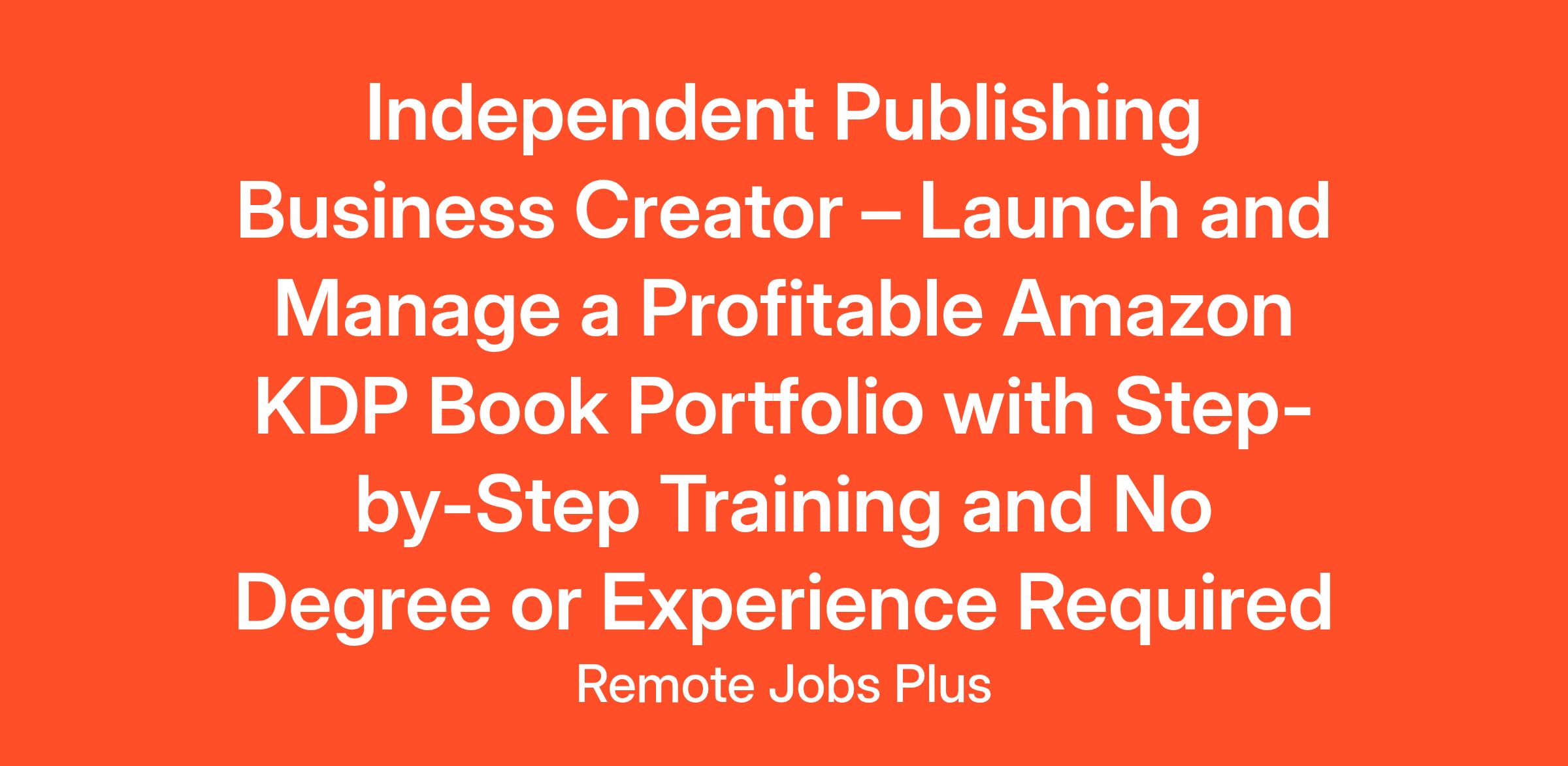 IntroductionThis opportunity is for individuals ready to take ownership of their own publishing business and develop it into a sustainable source of royalty-based income. Through Amazon Kindle Direct Publishing (KDP), you will create and sell books directly to readers worldwide. Each title you publish becomes a digital and print-on-demand asset—something you own outright—that can continue generating sales long after the initial creation and launch.You are not applying for a job in the traditional sense. There’s no clock to punch, no boss overseeing your daily activities, and no fixed salary. Instead, you are stepping into the role of business owner, product developer, and publisher. The work you put in directly shapes the reach and earning potential of your catalog. Amazon provides the infrastructure—printing, fulfillment, global distribution, and payment processing—so you can focus on creative and strategic decisions.This is particularly well-suited for those new to publishing because Amazon KDP is designed to be accessible. You don’t need to be an established author. You don’t need years of industry experience. What you do need is a commitment to producing high-quality, useful, or appealing books and a willingness to learn the systems that help those books find their audience.