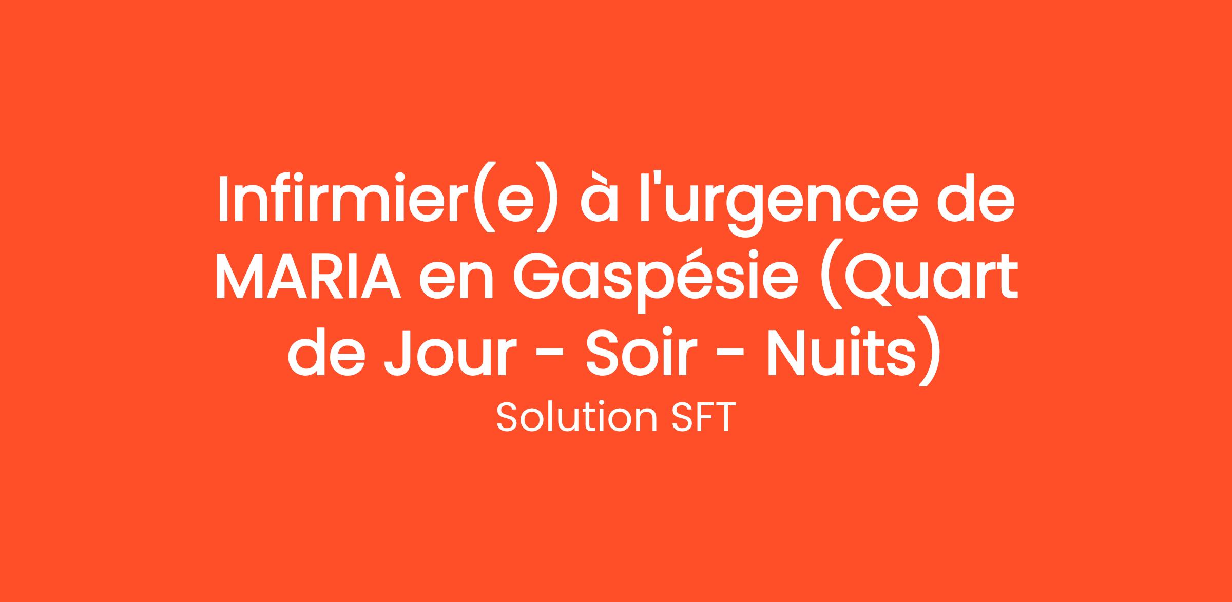 Services SFT est à la recherche d’un(e) Infirmier(ère) pour combler un mandat aux Urgences dans la ville de Maria en Gaspésie. Ce poste offre un environnement de travail stimulant, humain et axé sur la qualité des soins de proximité.