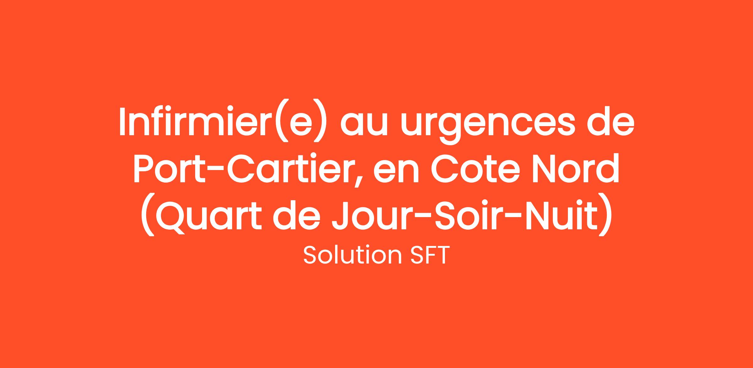Services SFT est à la recherche d’un(e) Infirmier(ère) pour combler un mandat au Urgences dans la ville de Port-cartier en Cote Nord. Ce poste offre un environnement de travail stimulant, humain et axé sur la qualité des soins de proximité.