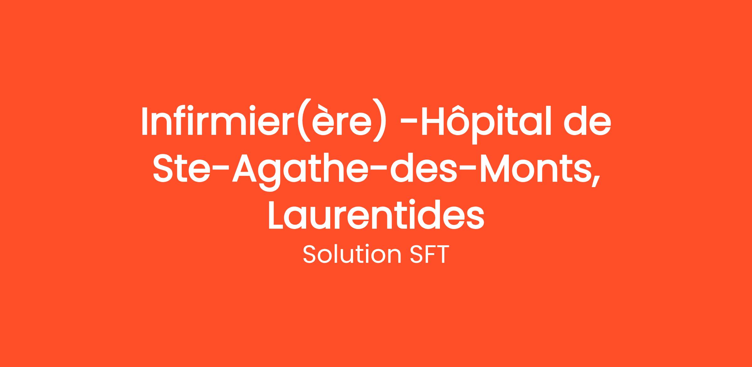 Services SFT est à la recherche d'infirmiers et infirmières dévoué(e)s pour rejoindre notre équipe à l'Hôpital de Ste-Agathe-des-Monts dans les Laurentides. Ce poste offre une opportunité unique de travailler dans un environnement de soins centré sur le patient et de collaborer avec une équipe de professionnels passionnés.