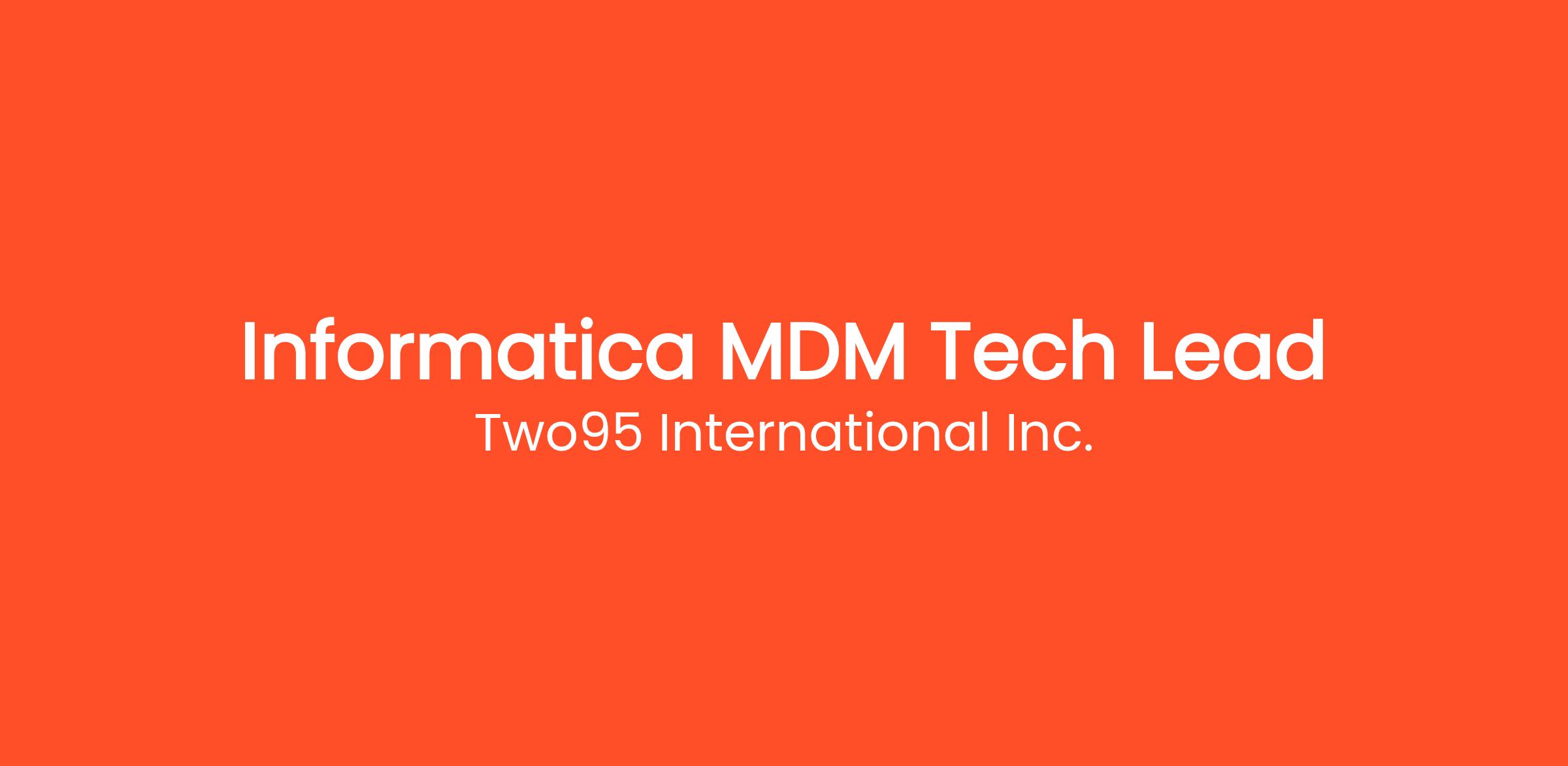 Title: Informatica MDM Tech Lead