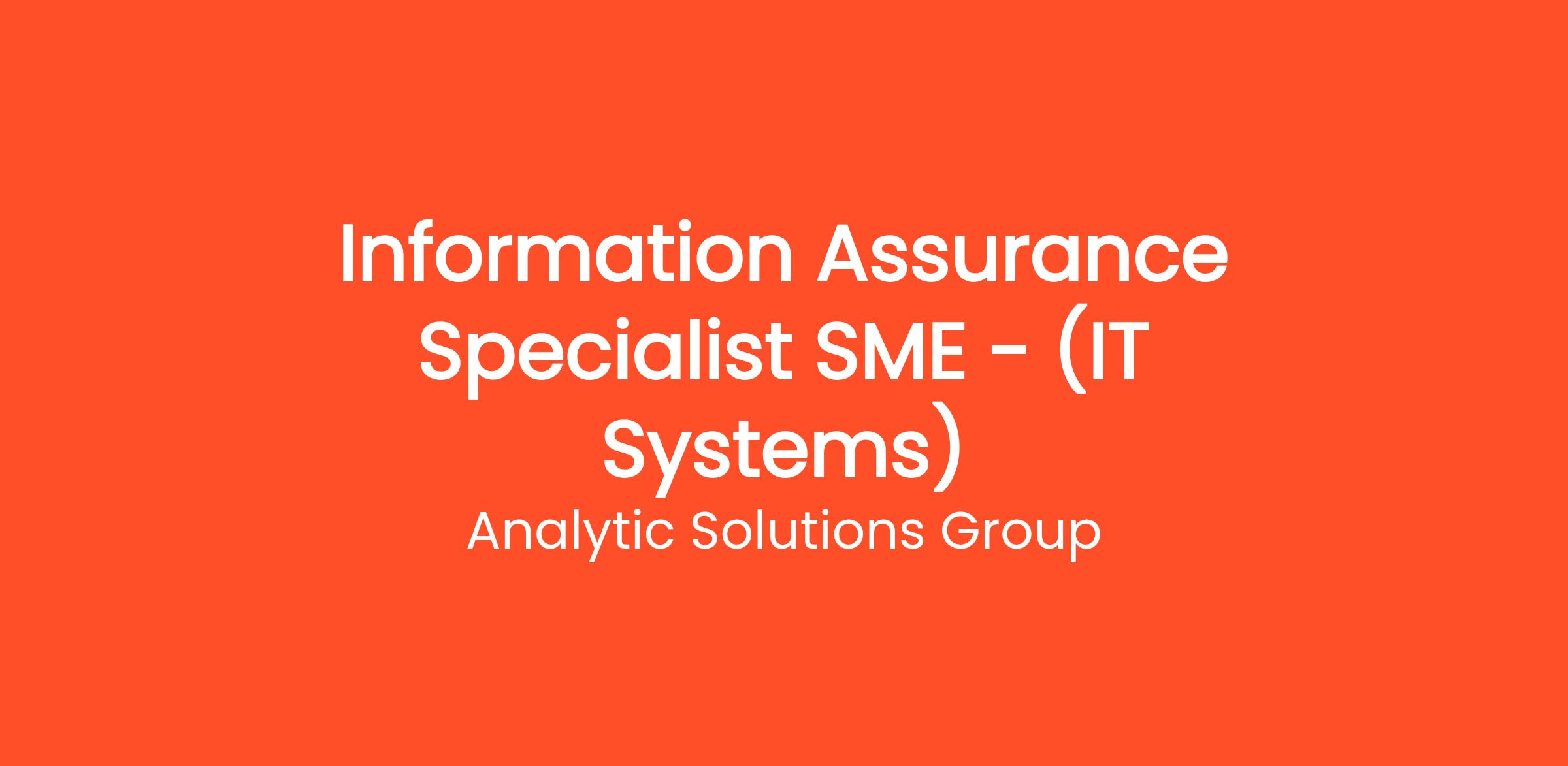 Exciting opening for a SME Information Assurance Specialist to support a large customer organization in the fast-growing National Security Group. This position is located in Bethesda; MD. Candidates must currently possess a TS/SCI Polygraph security clearance.