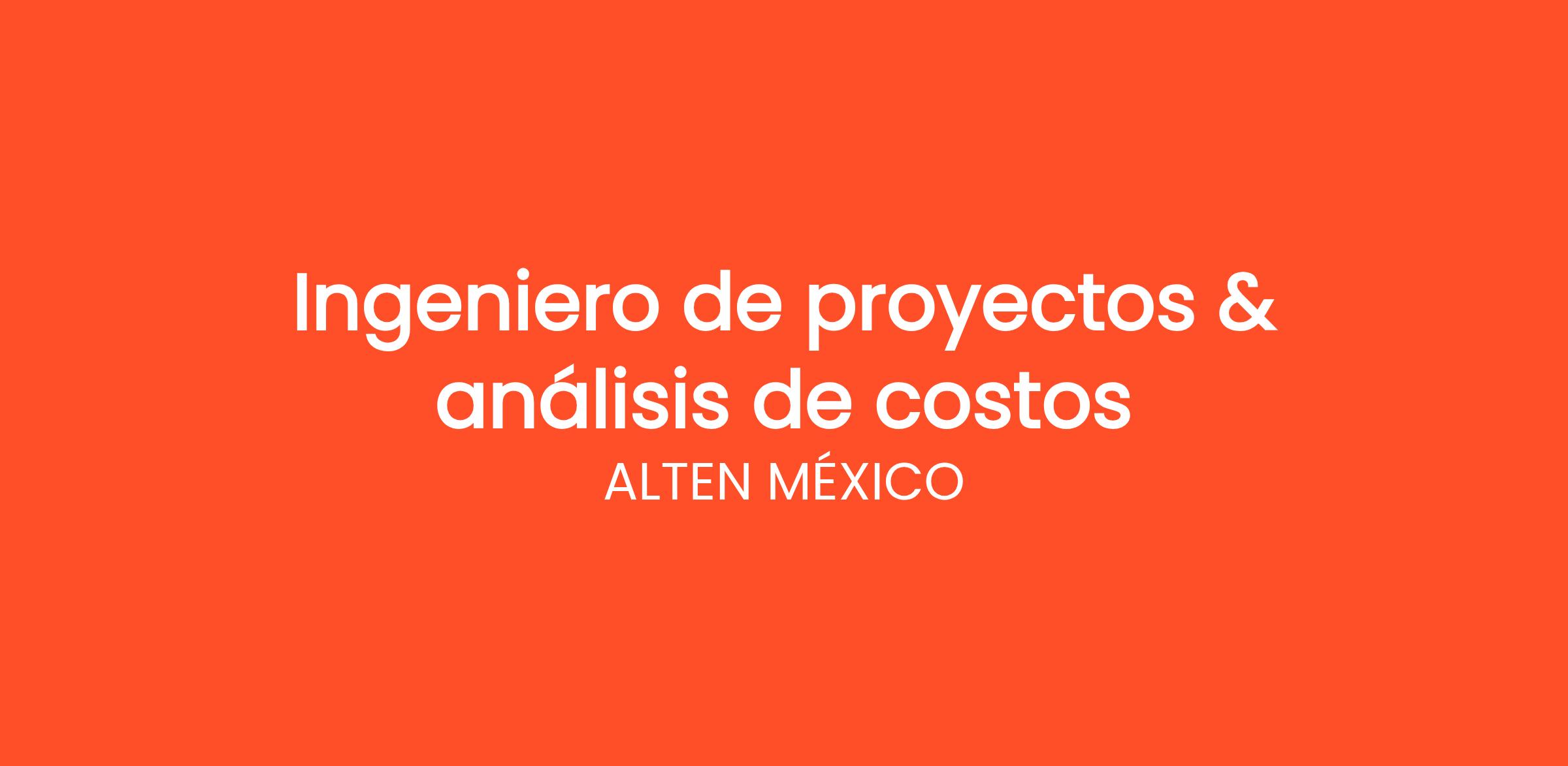 ALTEN México está en búsqueda de un Ingeniero de Proyecto y Análisis de Costos para unirse a nuestro equipo multidisciplinario. Buscamos un profesional proactivo y analítico, capaz de contribuir a nuestras iniciativas de ingeniería y optimización de costos en el sector alimentico. Este rol es fundamental para garantizar que nuestros proyectos se desarrollen dentro de los parámetros de costo y tiempo establecidos, y para brindar recomendaciones que mejoren la eficiencia en la ejecución de proyectos.