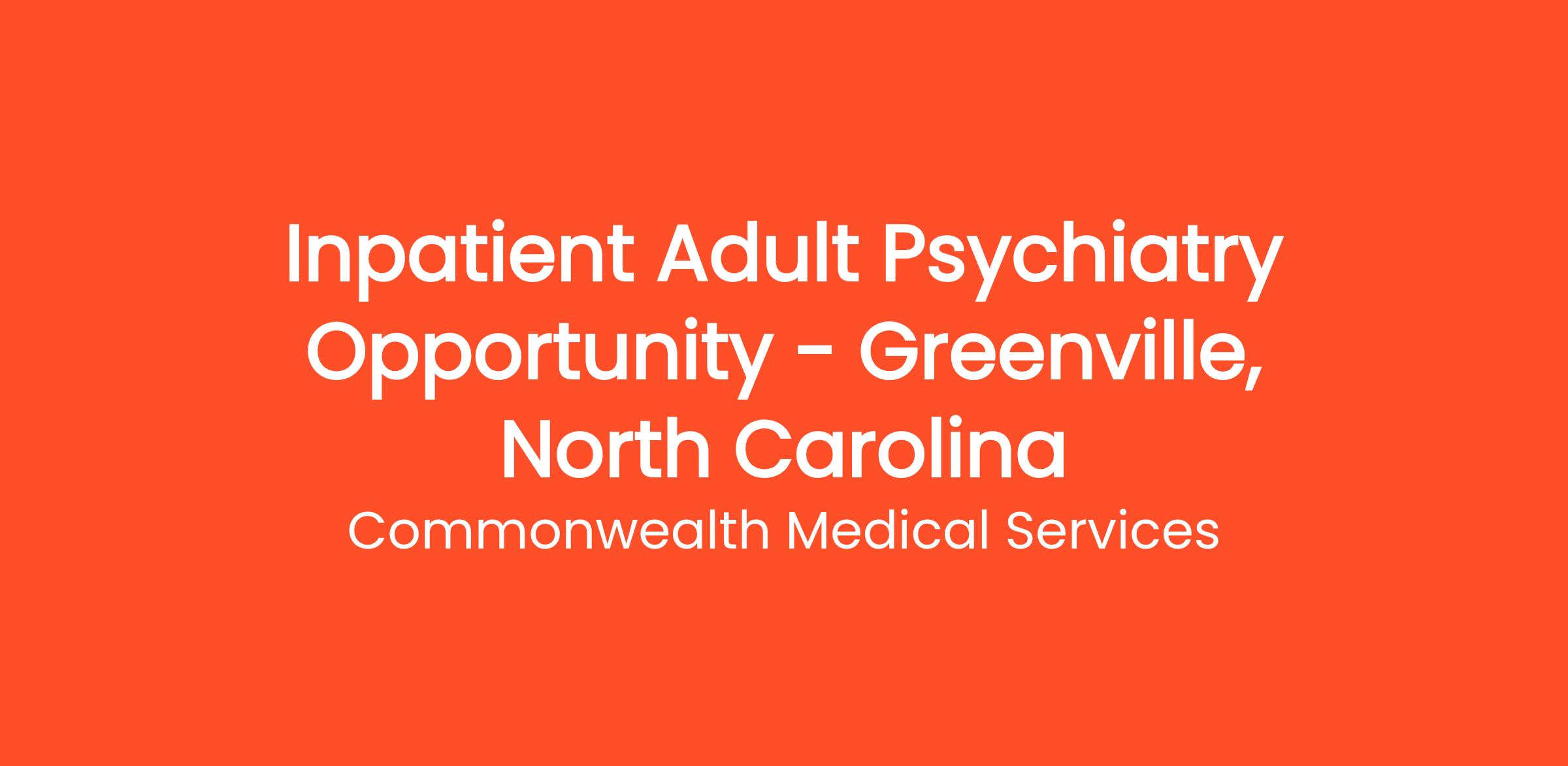Inpatient Adult Psychiatry Opportunity – Greenville, NC