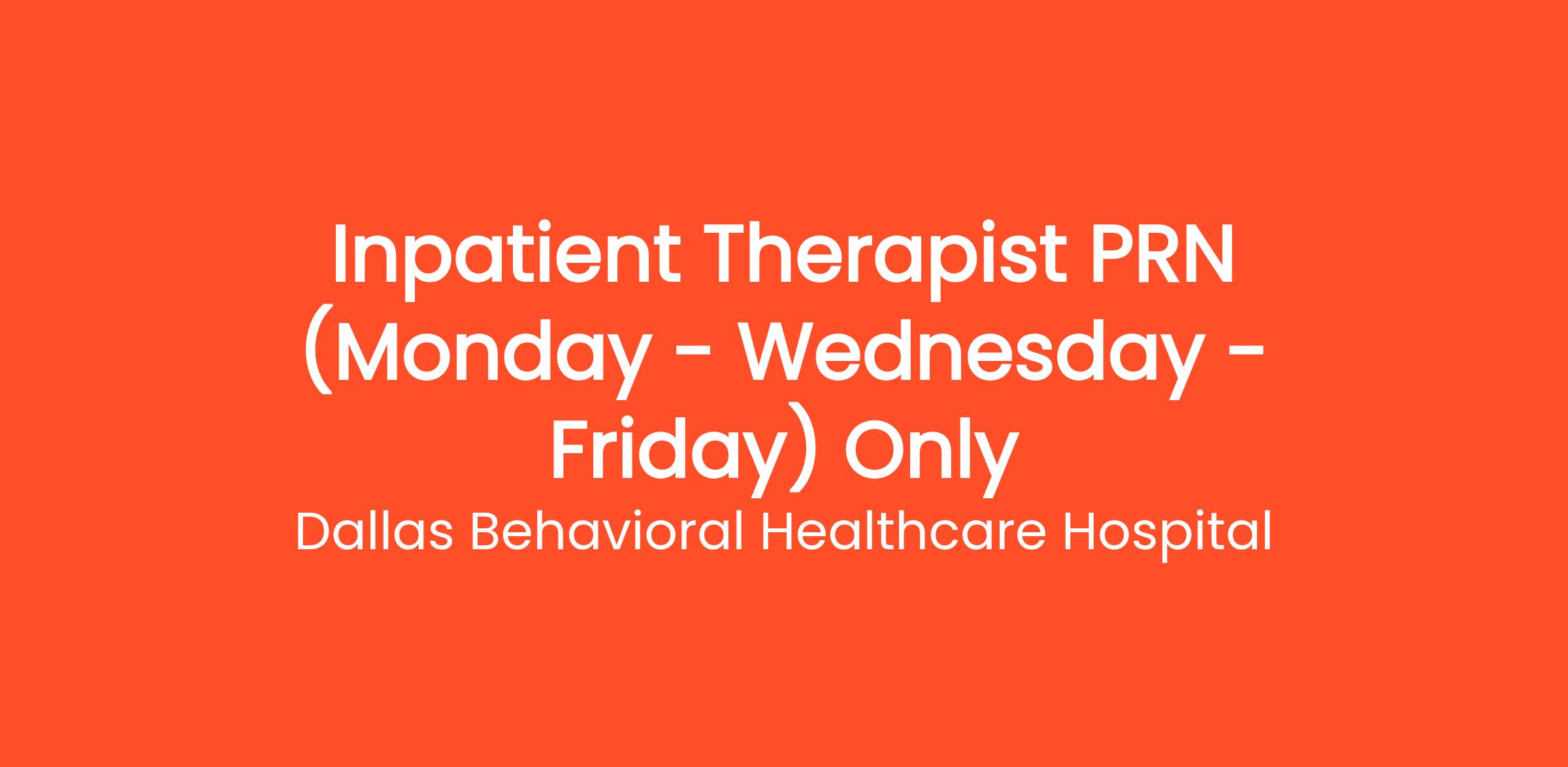 Dallas Behavioral Healthcare Hospital is an Equal Opportunity/Affirmative Action employer. All qualified applicants will receive consideration for employment without regard to race, color, religion, sex, national origin, disability, or protected Veteran status.