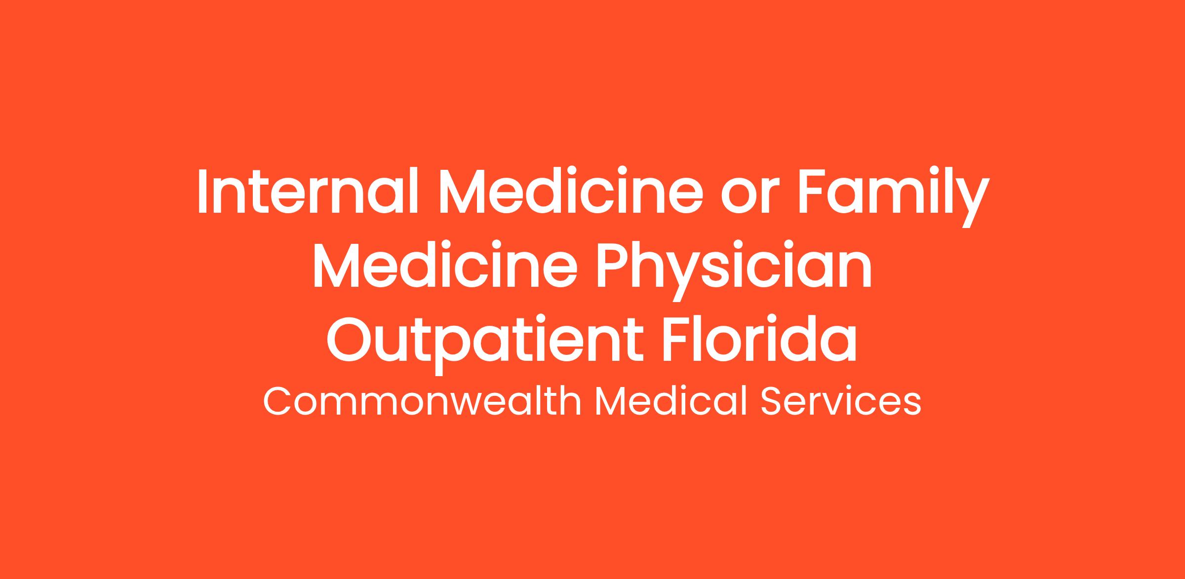 Commonwealth Medical Services is seeking a dedicated and experienced Internal Medicine or Family Medicine Physician to join our outpatient practice in Florida. This is an exceptional opportunity for a clinician who is passionate about providing high-quality care in a supportive and patient-focused environment.