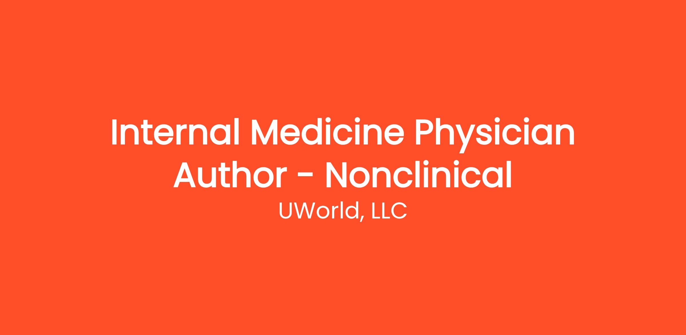 UWorld is seeking practicing Internal Medicine physicians to write and edit content for our web-based products. Internal Medicine physicians will collaborate with a team of physicians, editors, and illustrators to produce high-quality content for our USMLE®, Internal Medicine (ABIM®), and Family Medicine (ABFM) Question Banks, in addition to other products in development.