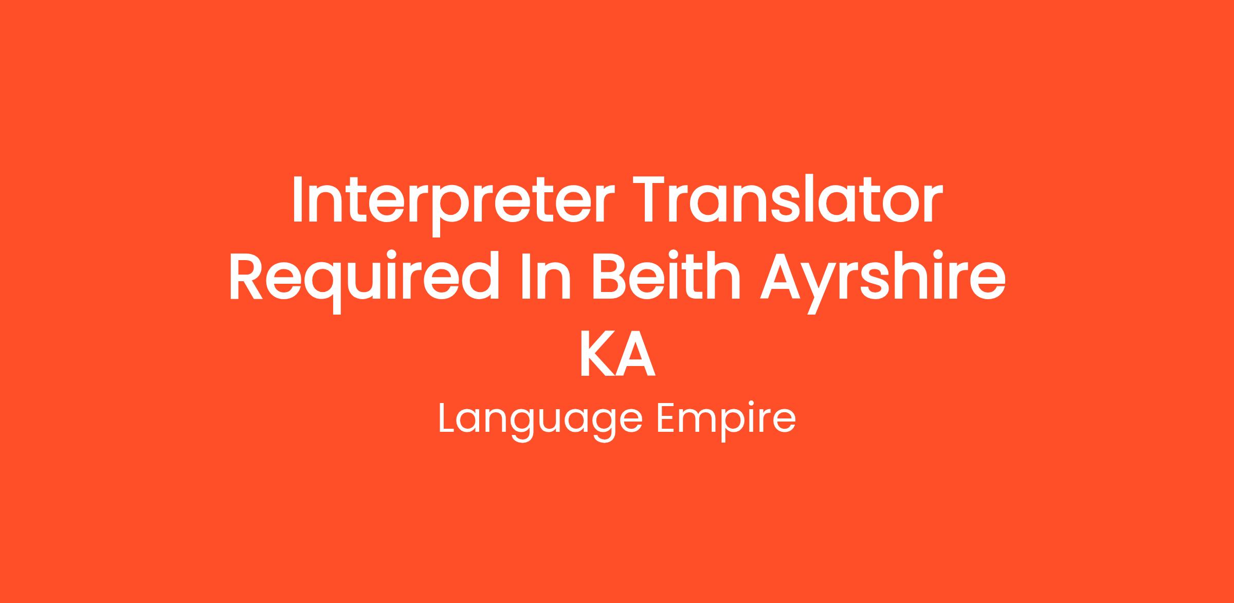 Are you looking for an interpreter job in Beith, Ayrshire?
