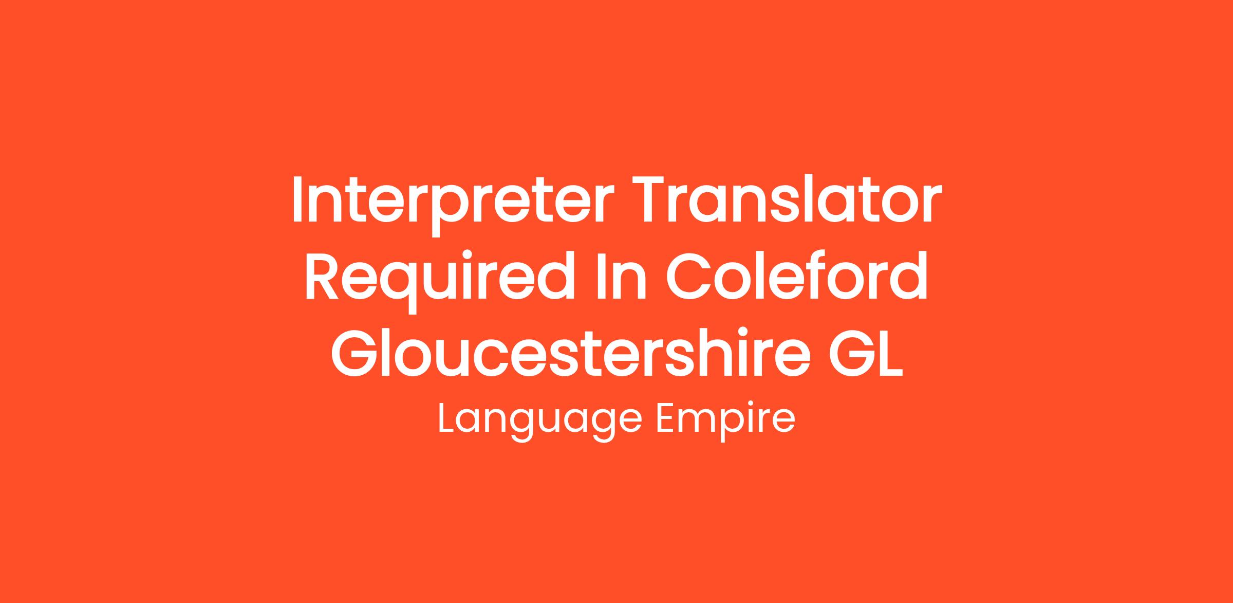 Are you looking for an interpreter job in Coleford, Gloucestershire?
