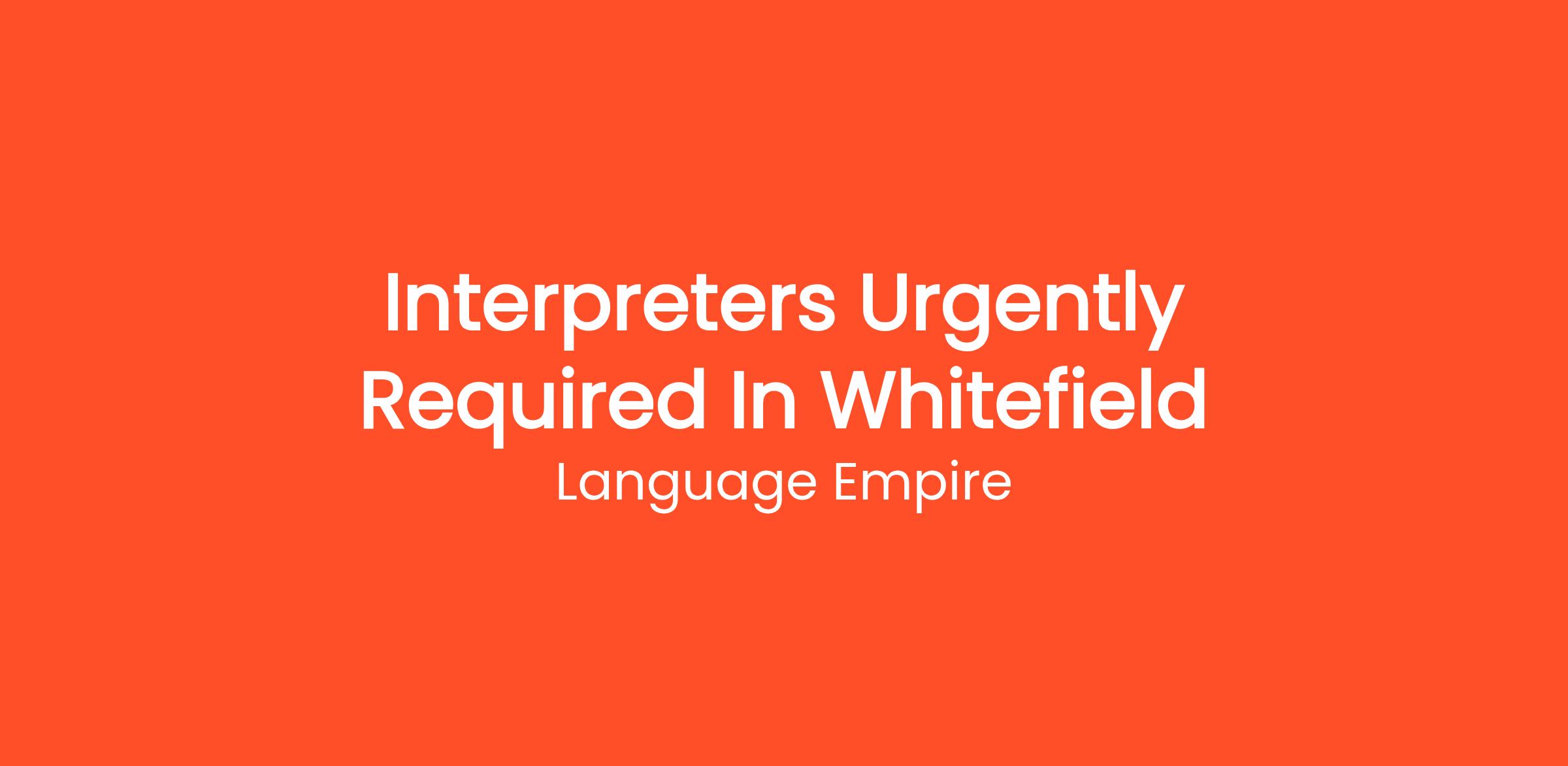 Are you looking for a interpreter job in Whitefield?