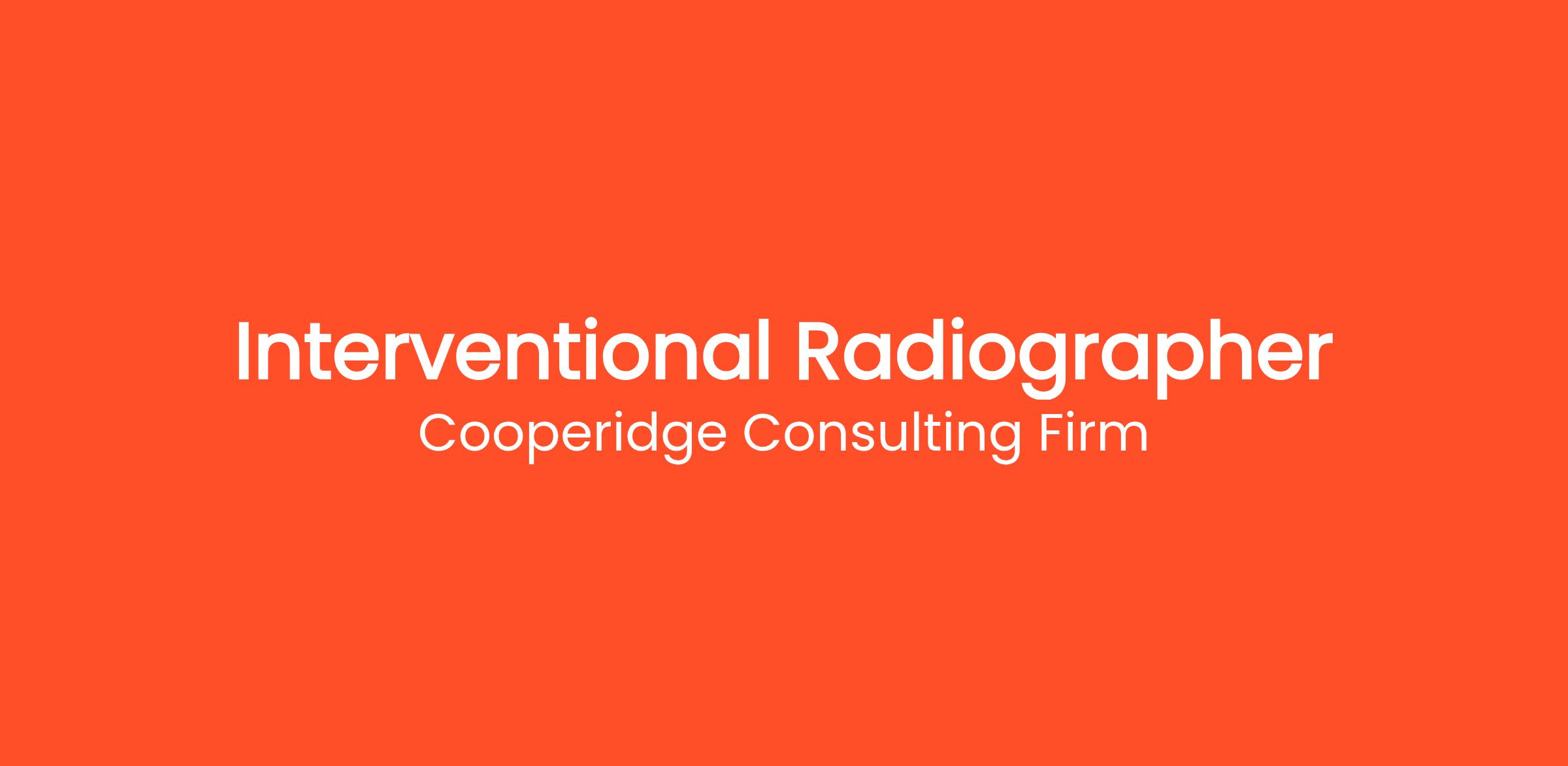 Cooperidge Consulting Firm is seeking an Interventional Radiographer for a top Healthcare client.
