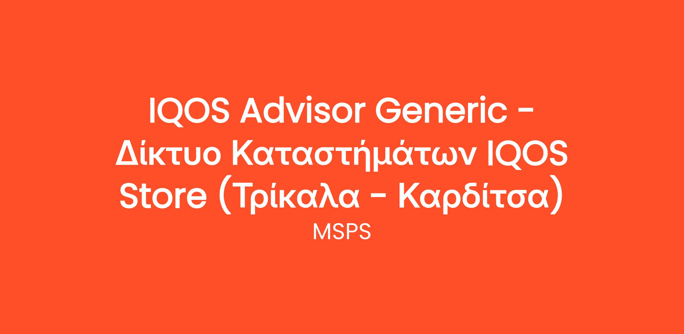 Η MSPS παρέχει υπηρεσίες στην εταιρεία ΠΑΠΑΣΤΡΑΤΟΣ για την προώθηση και πώληση του IQOS και σε αυτό το πλαίσιο αναζητά άτομα με πάθος και όρεξη για εργασία, για πλήρη απασχόληση, αορίστου χρόνου στο δίκτυο των καταστημάτων IQOS, σε Τρίκαλα - Καρδίτσα.