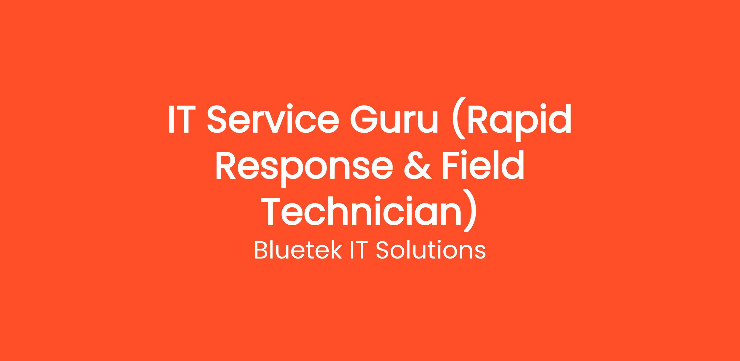 Bluetek IT Solutions is looking for an energetic and motivated IT Service Guru who thrives in a fast-paced environment where every day brings something new. This role combines our Rapid Response responsibilities with hands-on Field Technician work — one position, two exciting sets of responsibilities.