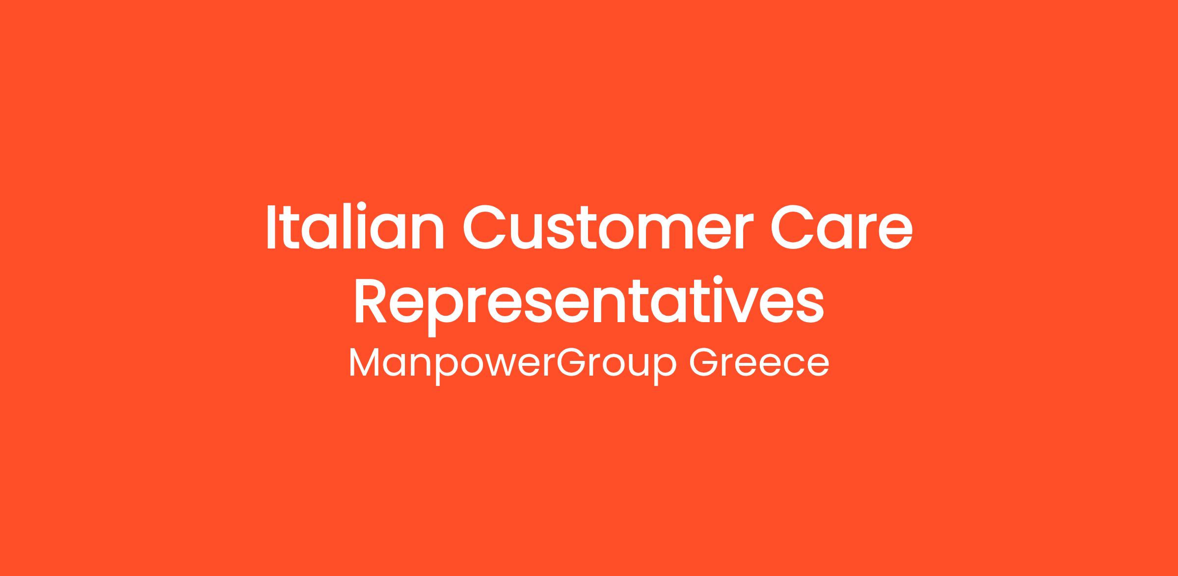 ManpowerGroup Greece, on behalf of its client, is looking for Italian Customer Care Representatives who know exactly how to make the most out of the clients’ experience!