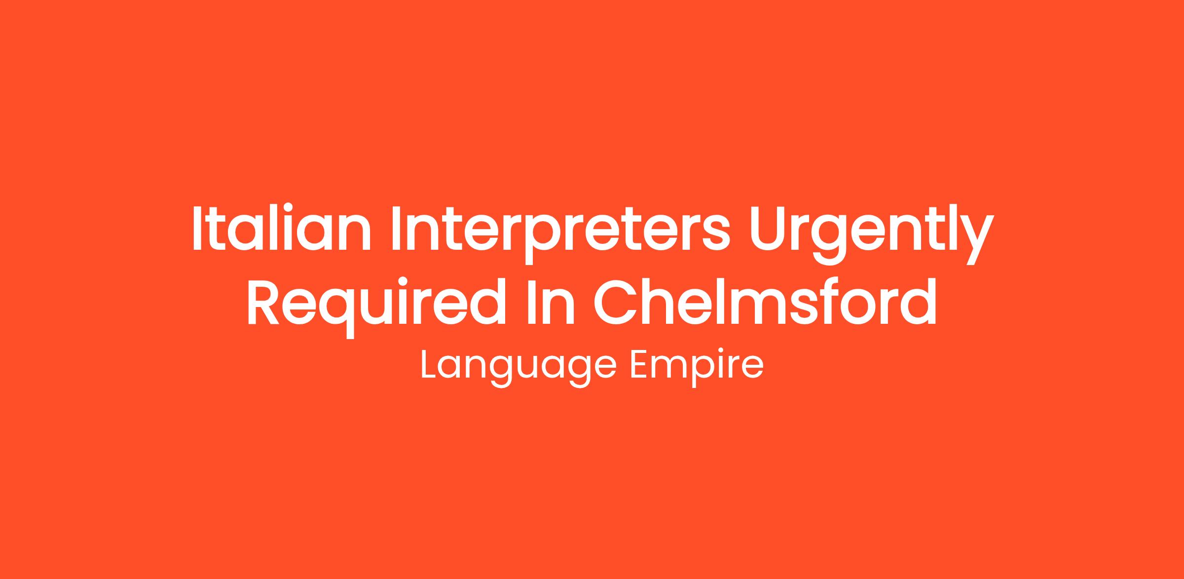 We are urgently recruiting for freelance Italian interpreters based in Chelmsford to work within various settings such as the NHS, Local Authorities, Police, Probation and other public and private organisations.