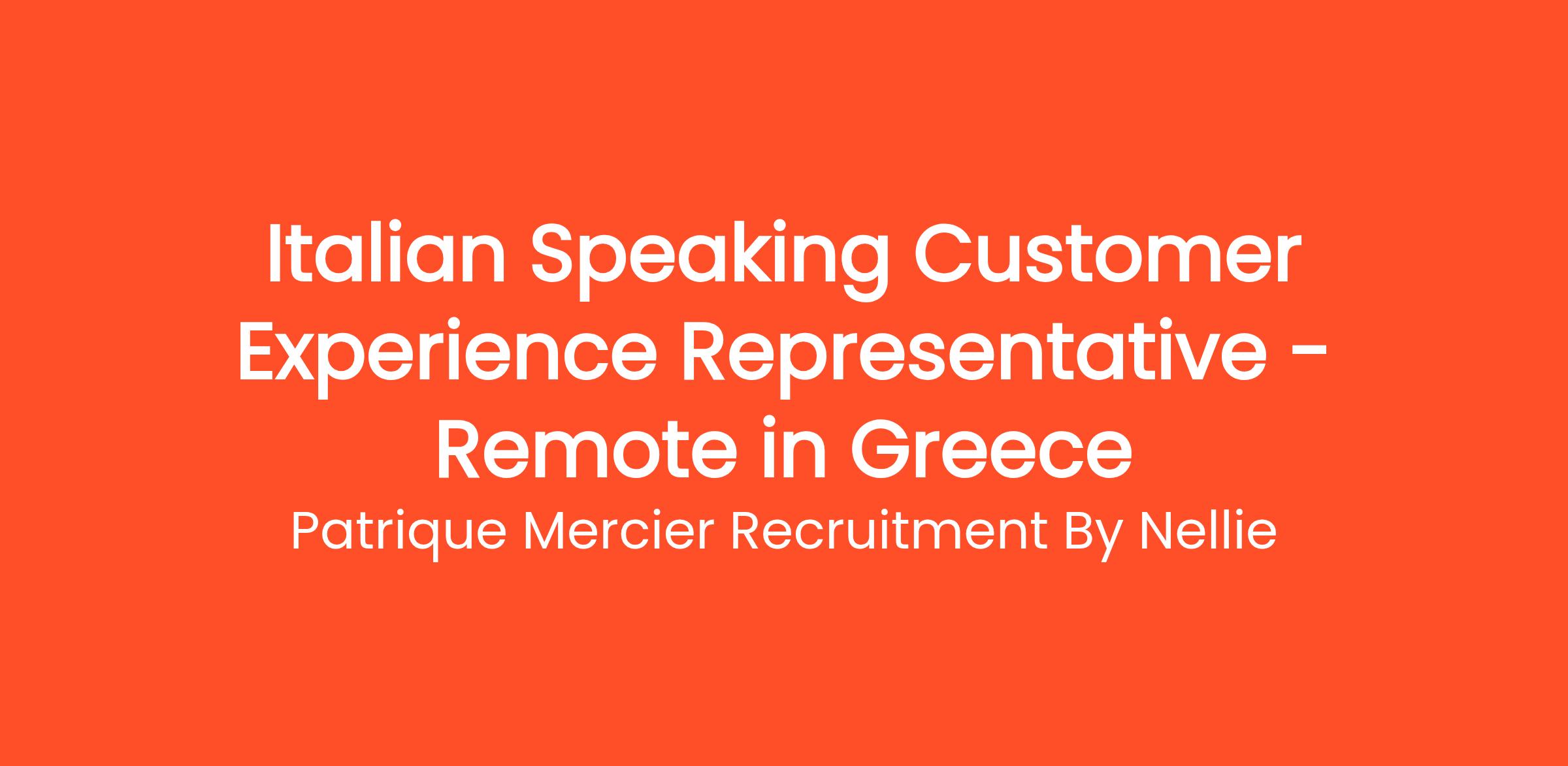 Patrique Mercier Recruitment FR is a respected recruitment agency focused on matching talented professionals with excellent job opportunities throughout Greece. We are currently seeking an Italian Speaking Customer Experience Representative to join our dynamic team. In this pivotal role, you will be responsible for providing outstanding service to our Italian-speaking customers, ensuring their needs are met with professionalism and care.