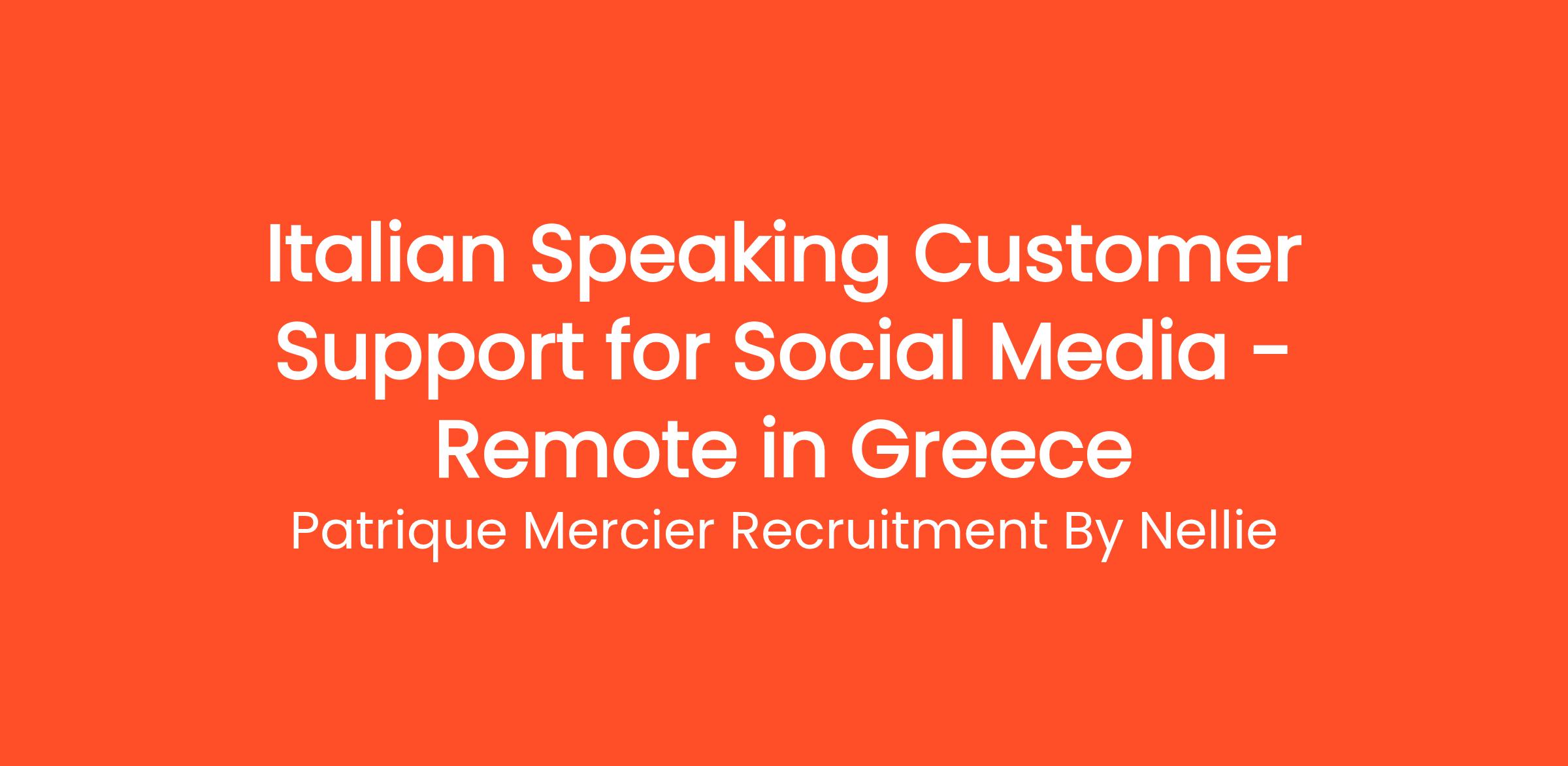 Patrique Mercier Recruitment FR is focused on connecting talented professionals with exciting career opportunities. We are currently seeking an Italian Speaking Customer Support Representative for Social Media. This role is designed for individuals who are enthusiastic about social media and customer engagement, and who are looking to assist Italian-speaking clients through various social media platforms.