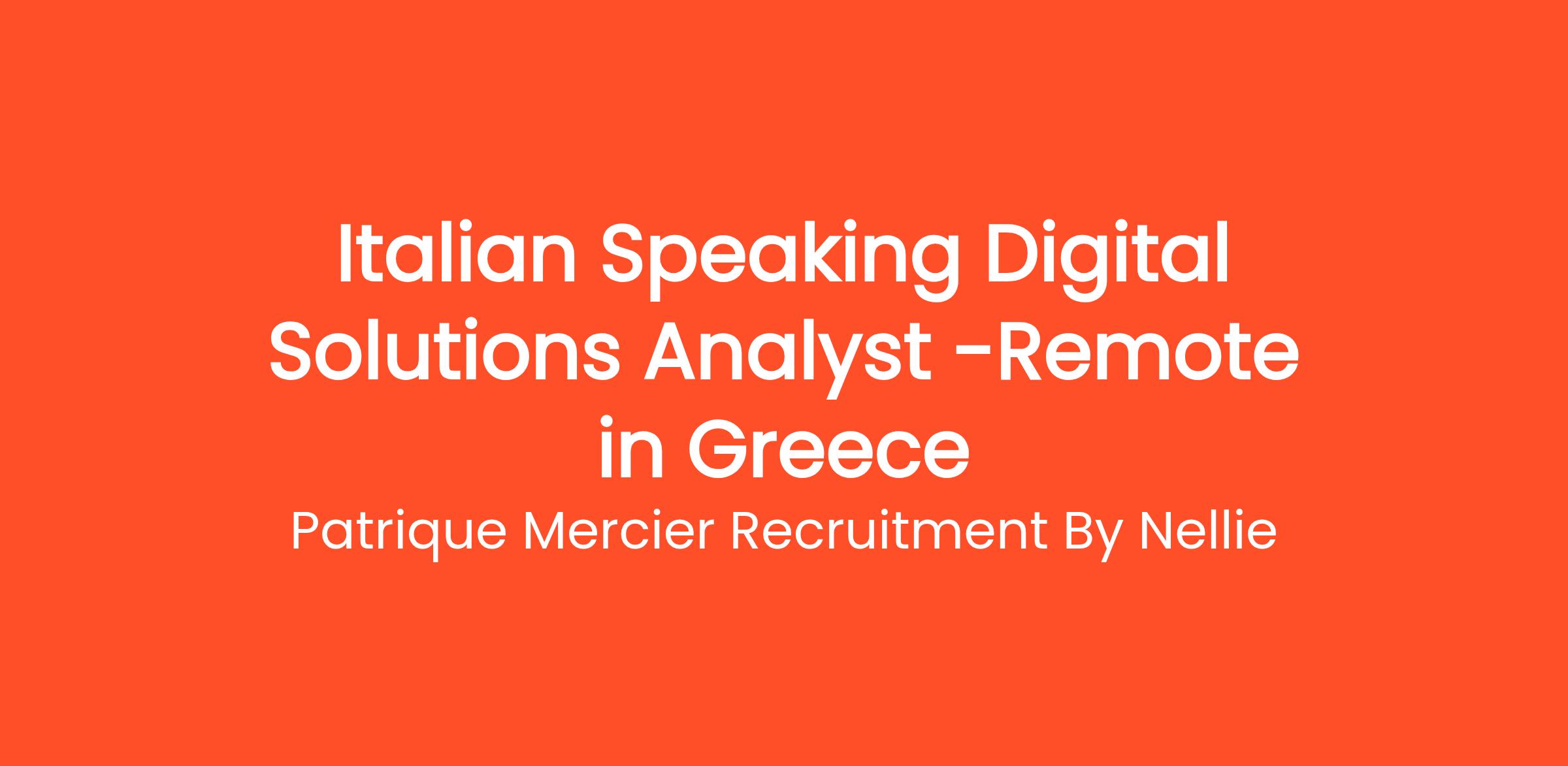 Patrique Mercier Recruitment FR is a well-respected recruitment agency specializing in connecting talented professionals with leading companies throughout Greece. We are currently searching for an Italian Speaking Digital Solutions Analyst to join our team. In this role, you will analyze and optimize digital solutions to enhance our clients' business operations. Your expertise in digital tools and strategies will enable you to provide insightful recommendations that support client growth and improve efficiency.
