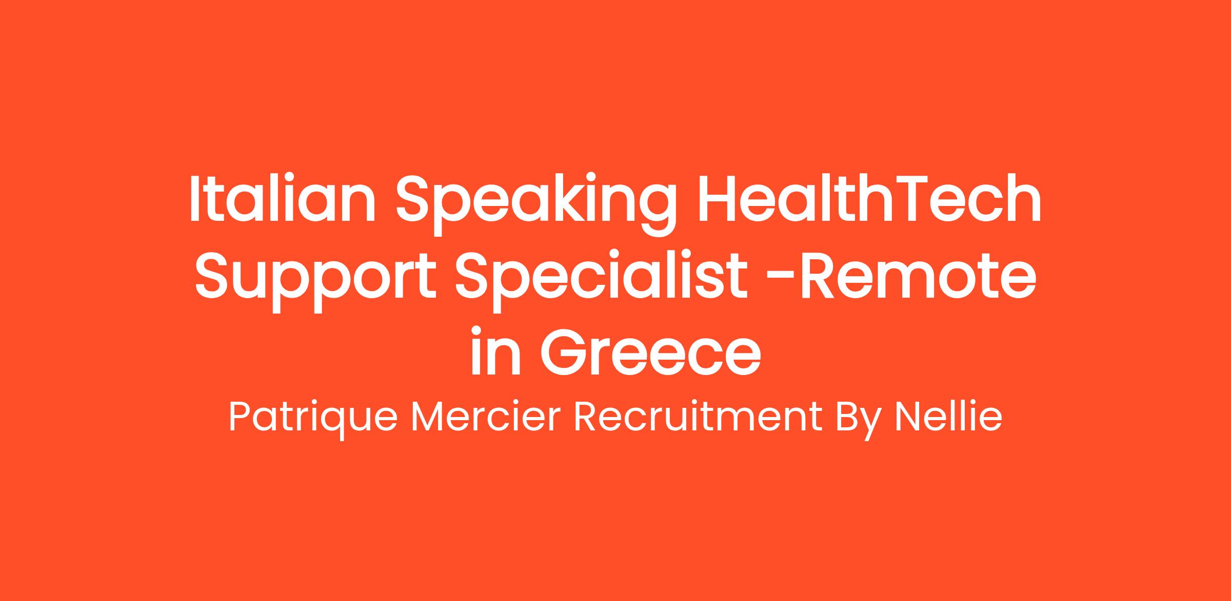 Patrique Mercier Recruitment FR is excited to announce an opening for an Italian Speaking HealthTech Support Specialist. This role is perfect for individuals who are not only passionate about technology but also have an interest in the healthcare sector. As a HealthTech Support Specialist, you will provide exceptional support to Italian-speaking clients utilizing health technology solutions, ensuring they receive the assistance they need to enhance their healthcare experiences.