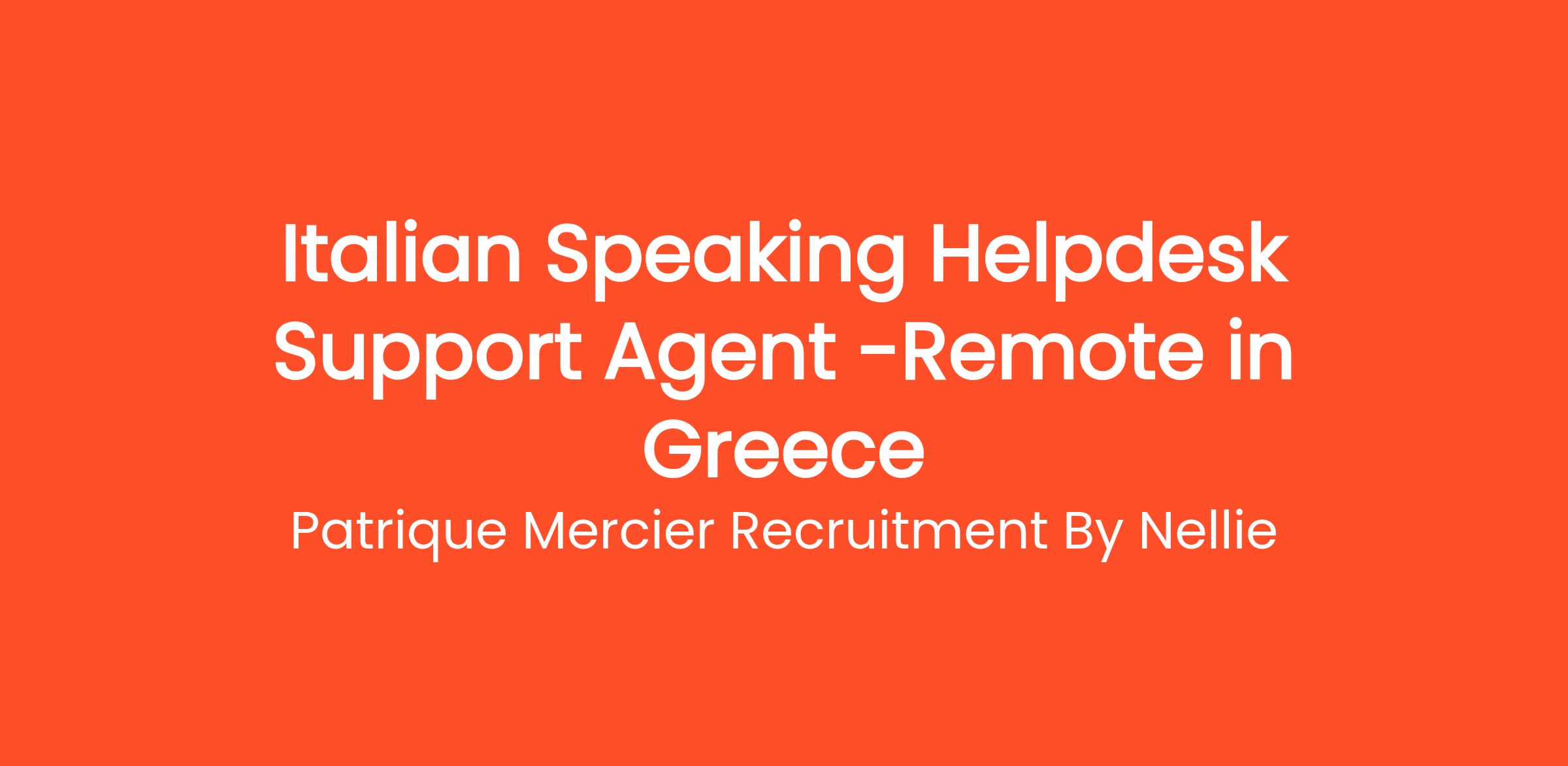 Patrique Mercier Recruitment FR is seeking an Italian Speaking Helpdesk Support Agent to join our dynamic team. This position is tailored for individuals who are enthusiastic about technology and possess strong communication skills. In this role, you will provide essential support to our Italian-speaking clients, assisting them with their inquiries and technical issues to ensure a smooth user experience.