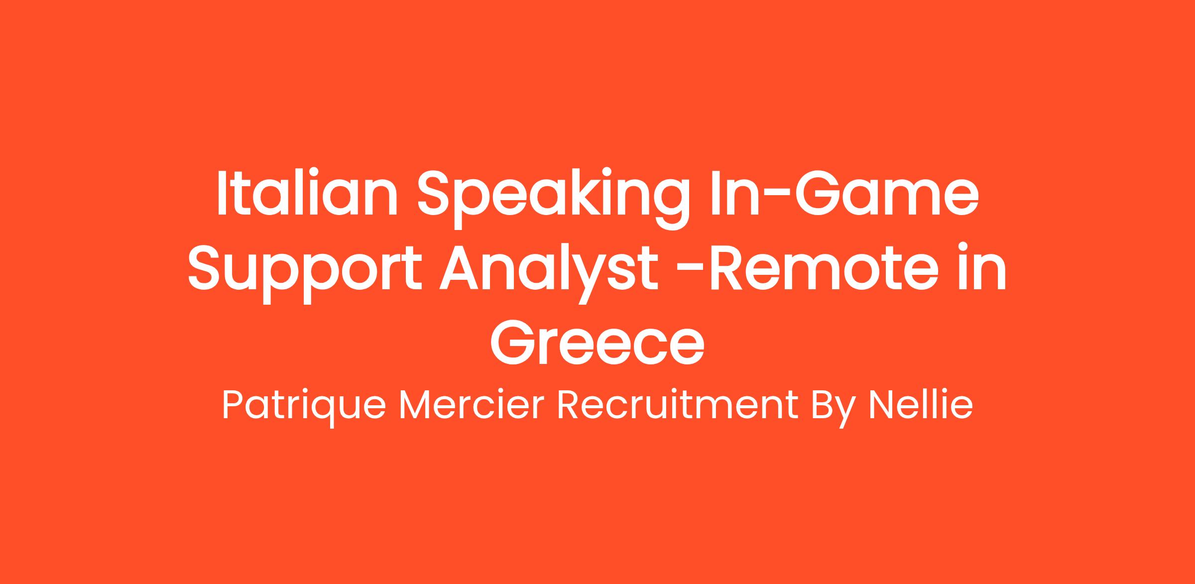 Patrique Mercier Recruitment FR is excited to invite applications for the position of Italian Speaking In-Game Support Analyst. This role is specially designed for individuals who are passionate about gaming and exceptional at providing customer support. As an In-Game Support Analyst, you will play a crucial role in ensuring that Italian-speaking players have a seamless and enjoyable gaming experience by addressing their concerns and providing technical assistance.