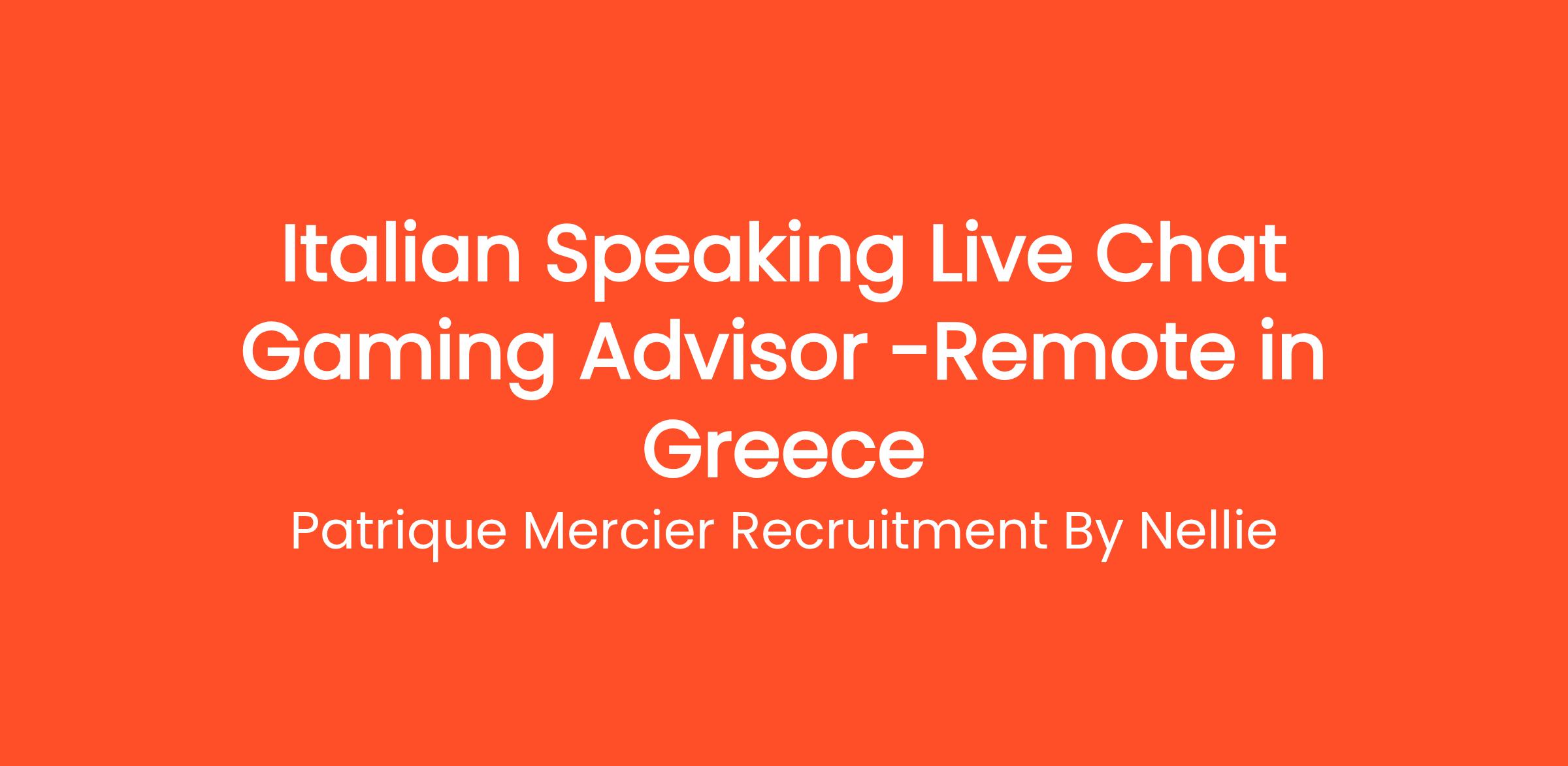 Patrique Mercier Recruitment FR is pleased to present an exciting opportunity for an Italian Speaking Live Chat Gaming Advisor. This role is perfect for individuals who are enthusiastic about the gaming world and possess a strong commitment to providing top-notch customer support in a dynamic and interactive environment.