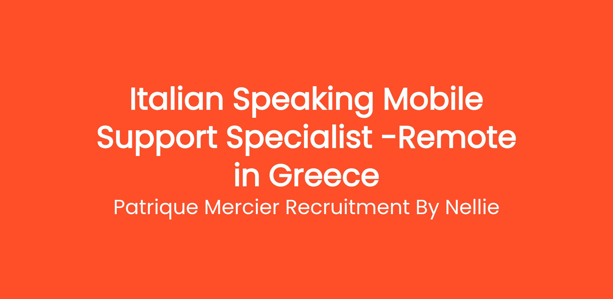 Patrique Mercier Recruitment FR is thrilled to offer an exciting opportunity for an Italian Speaking Mobile Support Specialist. This role is ideal for individuals who are passionate about mobile technology and customer service. As a Mobile Support Specialist, you will assist Italian-speaking clients with their mobile device inquiries and technical issues, ensuring an exceptional user experience.