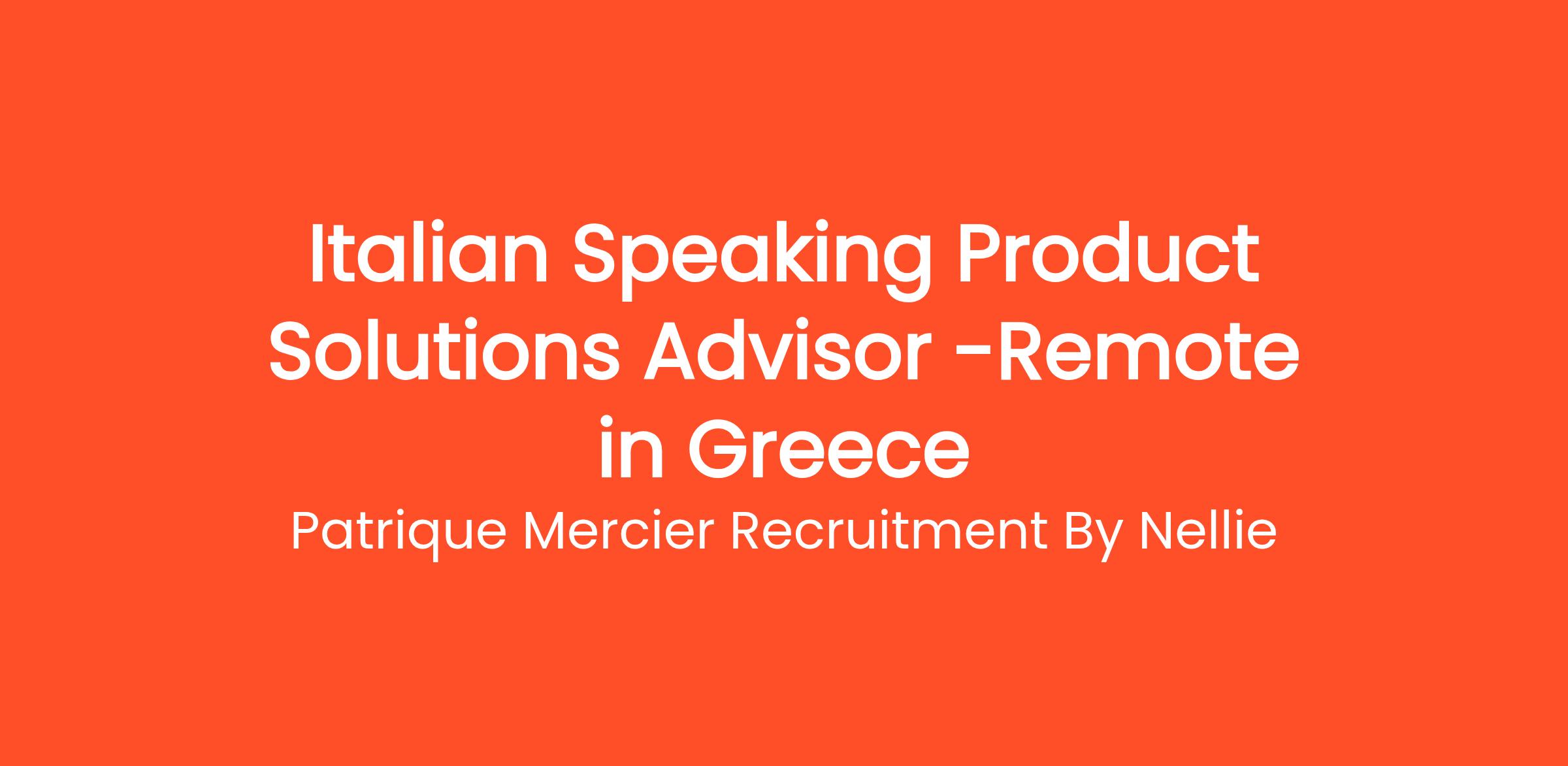 Patrique Mercier Recruitment FR is a renowned recruitment agency that specializes in connecting talented individuals with prominent employers throughout Greece. We are excited to announce an opening for an Italian Speaking Product Solutions Advisor. In this role, you will engage closely with Italian-speaking clients, assisting them in navigating our innovative product offerings and tailoring solutions that meet their specific business needs. Your expertise will be imperative in ensuring clients derive maximum value from our products.