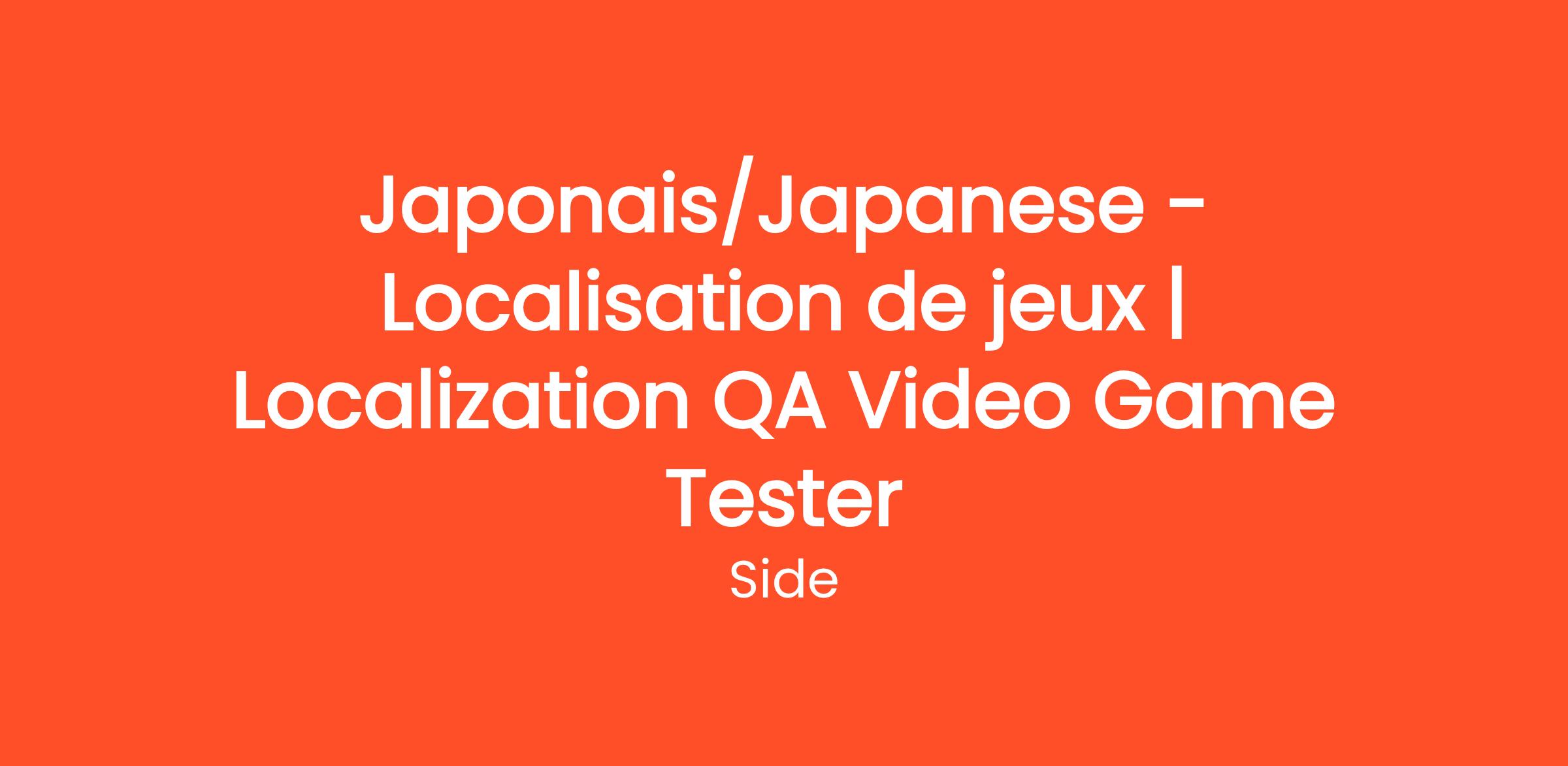 Êtes-vous quelqu'un qui aime jouer aux jeux vidéo et recherche un emploi où vous pouvez utiliser votre langue maternelle? Ne cherchez pas plus loin, Side Montréal est à la recherche de testeur(euse) de jeux vidéo AQ de localisation japonais! Soyez le premier à voir la version localisée des jeux en les testant vous-même!
