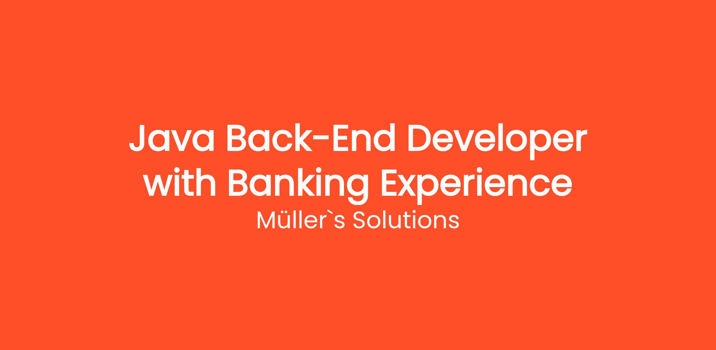 Müller's Solutions is looking for a talented Java Back-End Developer to join our innovative team. In this role, you will be responsible for designing, developing, and maintaining back-end systems that power our applications. You will work collaboratively with front-end developers, product owners, and other stakeholders to build robust and scalable services that meet user needs and enhance overall system performance.