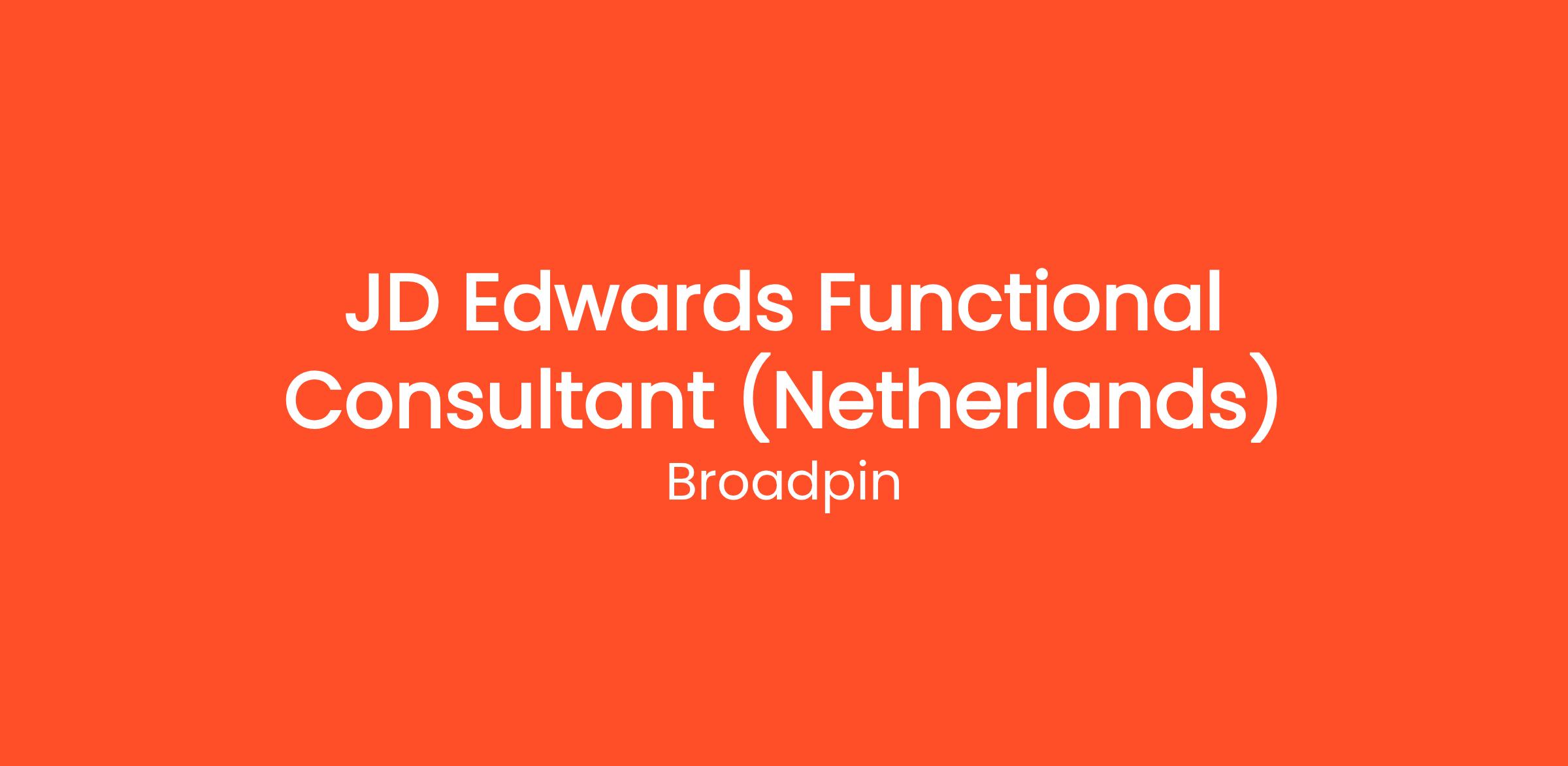Broadpin is growing fast! We are looking for dedicated JD Edwards Senior Functional Consultants in the areas of Financials, Logistics & Distribution 100% flexibility to working remotely from the Netherlands.