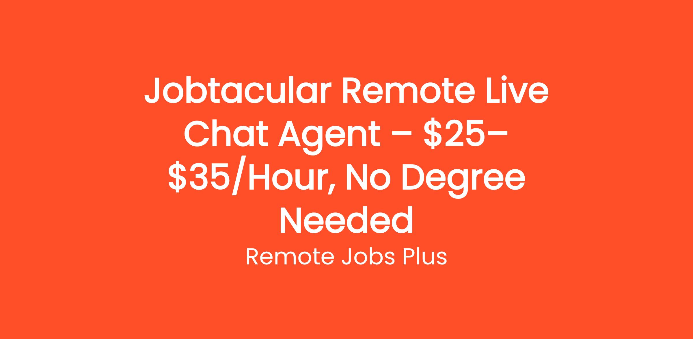 Jobtacular Remote Live Chat Agent – $25–$35/Hour, No Degree Needed