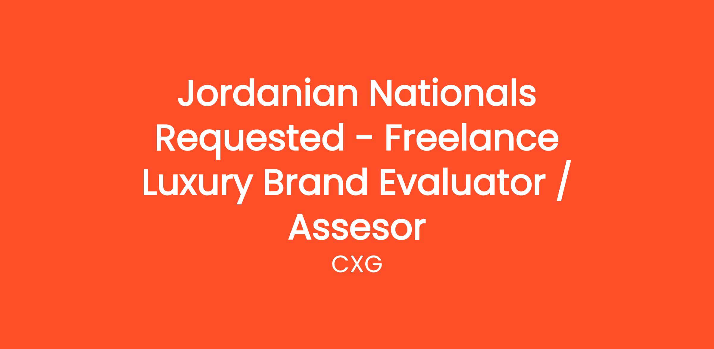 We are looking for JORDANIAN NATIONALS who are keen on sharing their opinion about their experience in an assigned luxury store. As a CXG Evaluator, you will conduct discreet evaluations of your favorite luxury brands in markets such as cosmetics, fashion, jewelry, watches or cars and provide valuable feedback.
