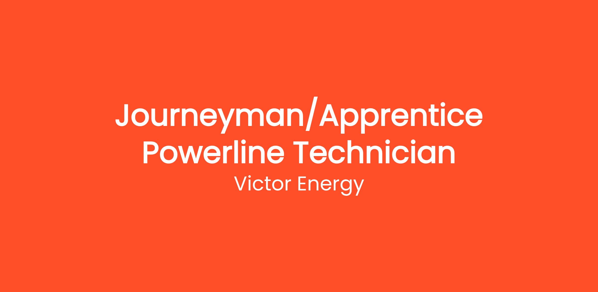 Victor Energy Ltd is a powerline contractor with over 30 years experience building Alberta’s electrical infrastructure, recently acquired by Java Holdings Ltd. Java staff have over 50 years of experience building some of Canada’s largest electrical infrastructure projects. We are seeking qualified Apprentice and Journeyman Powerline Technicians.