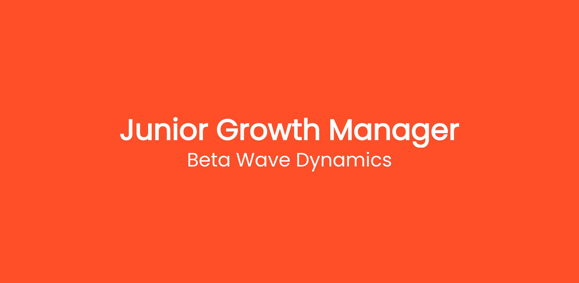 We are currently seeking a highly motivated and experienced Junior Growth Manager to anchor our Growth team. This role represents a unique opportunity to shape the foundational procedures of a rapidly growing segment within Beta Wave Dynamics. As the Junior Growth Manager, you will be tasked with untangling complex operational challenges, setting clear project trajectories, and ensuring that cross-functional teams remain perfectly aligned. Your daily focus will revolve around data-driven decision-making, where you will analyze performance metrics to continually refine our operational playbook. We are looking for an individual who possesses a rare blend of creative problem-solving skills and rigorous analytical capabilities. You will frequently serve as a subject matter expert, guiding junior team members and advising senior leadership on best practices within your domain. This position demands a high degree of autonomy; we expect you to own your projects entirely, managing risks proactively and delivering solutions that exceed initial expectations.